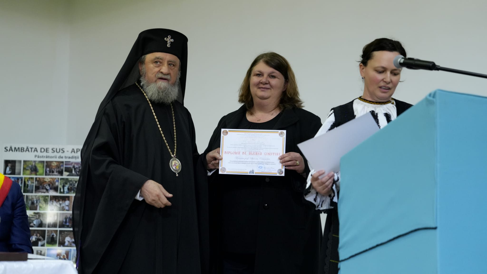 Au primit disticția Ordinul Sfântului Andrei de la IPS Laurențiu, Mitropolitul Ardealului, inspectorul școlar general Ovidiu Florin Tripșa și primarul comunei Sâmbăta de Sus Nicolae Morariu. Au primit  Ordinul Anastasia Șaguna, mama Sf Andrei Șaguna,  directoarea Școlii Gimnaziale Sâmbăta de Sus, prof. Adina Moldovan și inspectorul școlar de religie, prof. Elena Popa. În cadrul festivității de la căminul cultural au primit diplome dascălii școlii din localitate și preoții care au păstorit și păstoresc cele două biserici din sat.