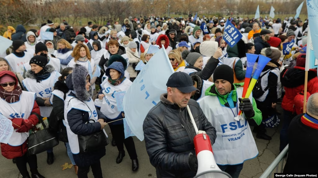 Peste 15.000 de angajați din sistemul de educației protestează miercuri în București, anunță cele trei federații sindicale din domeniu, informează Europa Liberă.