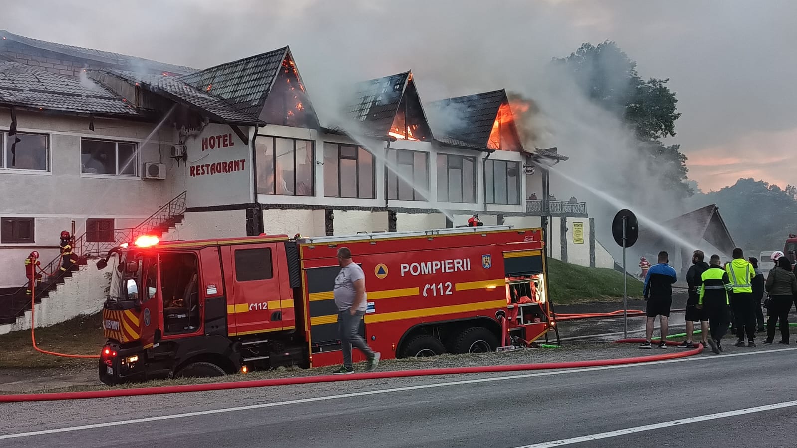 La această oră flăcările au cuprins tot restaurantul ,,Fântânița Mandrei“ din localitatea Mândra, cunoscut de localnici ca ,,Broscuța“. Pompierii au acționat cu întârziere, iat incendiu a luat amploare, așa cum spun martorii aflați la fața locului. Incendiul a izbucnit sâmbătă, 3 iunie a.c., în jurul orei 20.00, la acoperiș.
