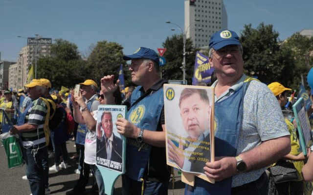 În fața Reprezentanței Comisiei Europene protestează sindicaliști din poliție și penitenciare.