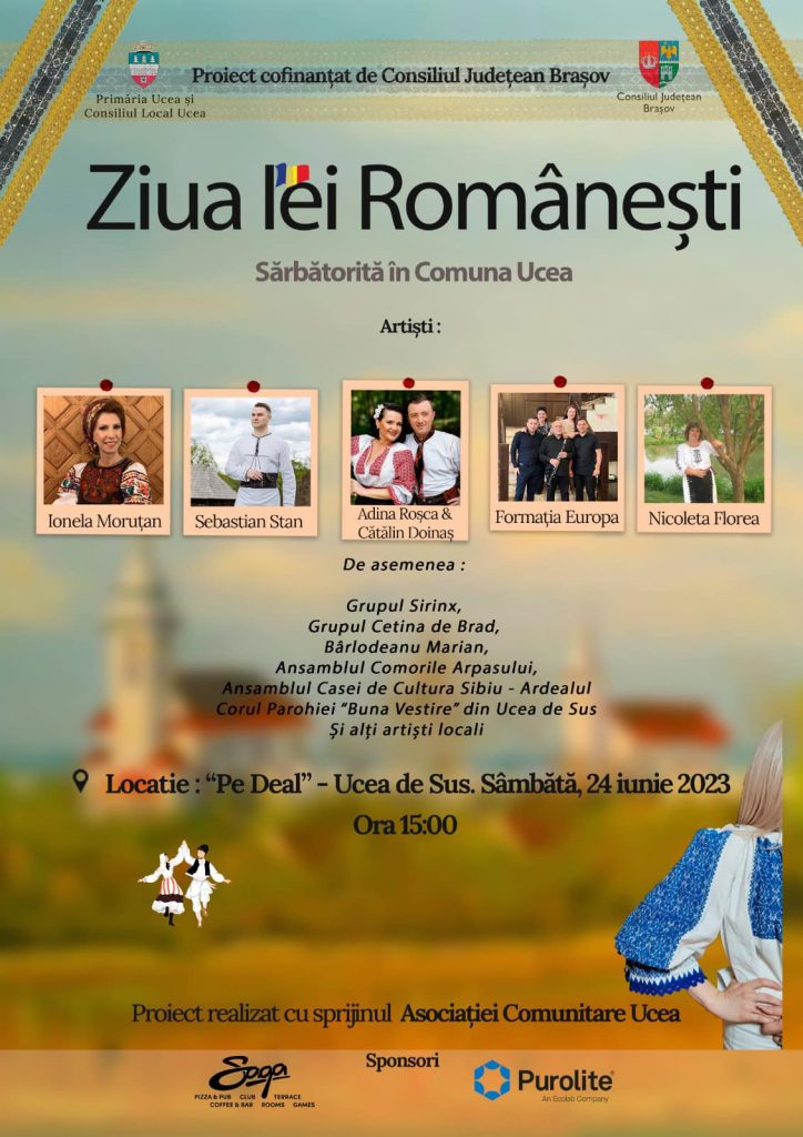 Comunitatea din Ucea va sărbători ,,Ziua Iei românești“ sâmbătă, 24 iunie a.c. ,,Pe Deal“ la Ucea de Sus se vor aduna sătenii și invitații lor pentru a se bucura de spectacolul oferit de Primăria și Consiliul Local Ucea. Festivalul va începe la ora 15.00. Vor urca pe scenă Ionela Moruțan, Sebastian Dan, Adina Roșca și Cătălin Doinaș, Nicoleta Florea și Formația Europa. Antrenul și voia bună vor mai fi întreținute de Grupul Sirinx, Grupul Cetina de Brad, Bârlădeanu Marian, Ansamblul Comorile Arpașului, Ansamblul Casei e Cultură Sibiu- Ardealul, Corul Parohiei ,,Buna Vestire“ din Ucea de Sus și alți artiști locali. Proiectul este cofinanțat de Consiliul Județean Brașov prin Asociația Comunitară Ucea.