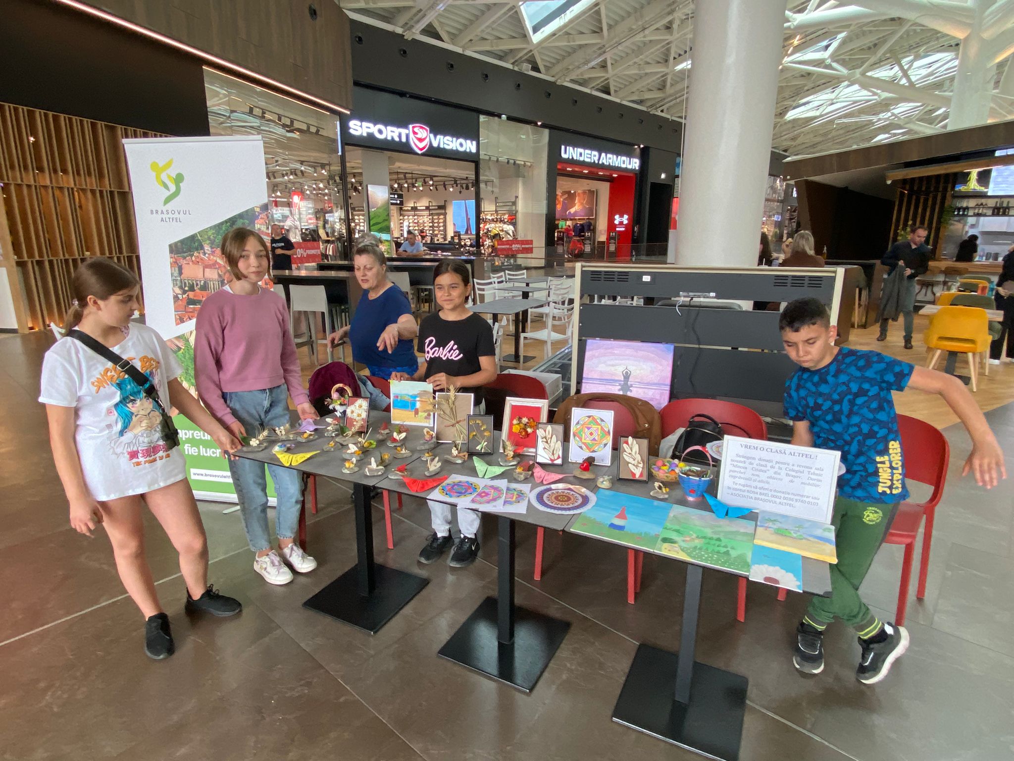 - ,,Totul a pornit de la nevoia urgentă de a schimba parchetul. Cel pe care îl avem acum este unul foarte vechi și arată urât. Ne dorim pentru clasa noastră altceva! Abia suntem în clasa a V-a, deci mai avem peste 3 ani de stat în această clasă. Acum câțiva ani am avut o nevoie similară, repectiv un videoproiector, pentru clasa în care eram atunci. Ne trebuiau vreo 2000 de lei și am apelat la Radu-Valentin Paul, președintele Asociației Brașovul Altfel, pentru ghidare. Împreună cu acesta am reușit să strângem în câteva zile peste 3000 de lei, ceea ce ne-a permis să luăm și un laptop. Acum am decis să apelăm din nou la dumnealui. Ne bucură faptul că a spus prezent și de această dată și că ne sprijină proiectul “Vrem o clasă altfel!”. După ce am început să facem planul ne-am dat seama că avem și alte nevoi, așa că proiectul a crescut și suntem încrezători că o să reușim să facem rost de donațiile de care avem nevoie. Copiii noștri merită o altfel de clasă! Am desfășurat o primă acțiune de strângere de fonduri în perioada 1-8 martie în centrul comercial Eliana, unde am oferit câte un mărțișor, și alte obiecte făcute de copii, oricui a fost dispus să ne ajute cu o donație. În iunie am fost 2 săptămâni în AFI Mall unde am oferit picturi pe față și obiecte făcute de noi. Cu ajutorul Patriciei Potecea, de la ImaGOO Design, avem un proiect care conține: parchet nou, dulapuri pentru copii, bănci noi, scaune noi și zugrăveală. Ideal ar fi să le facem pe toate, iar costul total este în jur de 90.000 de lei. Am strâns până cum 11500 de lei. Ideea cu care am plecat la drum a fost să cerem donații și să oferim celor care ne ajută ceva care să fie făcut de copiii noștri. Profităm de situație să le oferim și o lecție de viață. Alături de noi este și diriginta clasei, doamna Lucia Pavelescu, care este implicată 100% în acest proiect. Dorim pe această cale să îi mulțumim din tot sufletul!”, a declarat Emilia Oțeleanu, reprezentantul părinților.