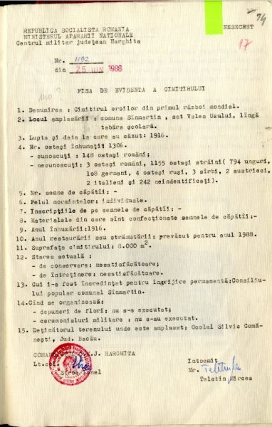 Pe astea le vrea sosul să devină monumente istorice în România? Clasarea Cimitirul Internațional al Eroilor Valea Uzului ca Monument Istoric se poate face doar după ziua de sâmbătă 8 iulie, după ce în cimitir vor fi și crucile eroilor noștri, cu ajutorul lui Dumnezeu.