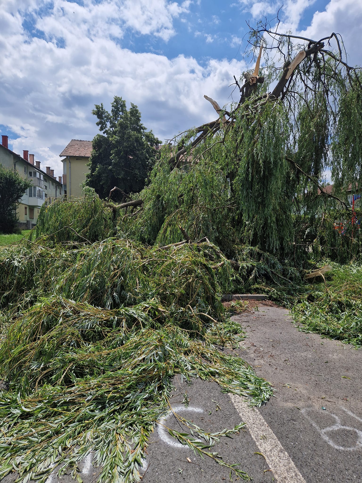 - „Împreună cu Poliția, cu cei de la Salvamont și cu sprijinul unor firme din oraș, ne-am ocupat deja de problemele urgente. Am ridicat o parte din copacii căzuți, inclusiv pe cel din cimitir şi am remediat problema iluminatului și fibrei optice. Vom continua zilele acestea sa ridicăm copaci, crengi si alte resturi. Pentru cimitir, am purtat deja discuţii și vom găsi soluții pentru a remedia stricăciunile. Astăzi am avut la dispoziție o macara de 16 tone din partea firmei Viromet, iar de luni, vom avea un utilaj mai mare, de 50 de tone, de la firma Ecolab, cu care vom degaja restul copacilor. De asemenea, vom tăia toți copacii care prezintă instabilitate după furtună, pentru a evita prăbușirea lor la alte eventuale furtuni. Mulțumesc mult colegilor din Primărie, Poliției, Salvamontului, firmelor Viromet, Ecolab şi Ecosistem pentru ajutorul acordat!”, a transmis Camelia Bertea, primar al orașului Victoria.