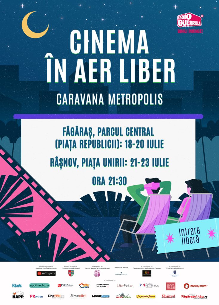 Pe 18 iulie se deschide programul cinematografului itinerant Caravana Metropolis – cinema în Aer Liber la Făgăraș, în Parcul Central (Piața Republicii). Între 18 și 20 iulie, publicul va putea viziona gratuit filme lansate în ultimul an, premiate sau nominalizate la festivaluri prestigioase de film. Ulterior, Caravana Metropolis va poposi și la Râșnov, în Piața Unirii, în perioada 21 – 23 iulie. Toate detaliile se găsesc pe pagina de Facebook.