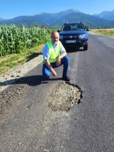 - ,, Pe aceste drumuri au fost executate lucrări de cosire, de tăiere de acostament, de plombare și de burdușire. În general am găsit lucrări executate corect, cu plombări pe suprafețe mari, pe întreaga lățime a unei benzi, dar în câteva cazuri au fost și lucrări mai slabe calitativ, unde stratul de asfalt era deja deteriorat. Voi cere ca refacerea integrală a lucrărilor necorespunzătoare să fie făcută în cadrul garanției. Am verificat și calitatea unor reparații care au fost făcute în garantie pentru lucrări care au fost executate anul trecut. Pe aceste drumuri urmează să se mai facă plombări sau dacă este cazul, burdușiri, iar la final se vor reface marcajele și am dat deja o comandă în acest sens“ explică Szener Zoltan.