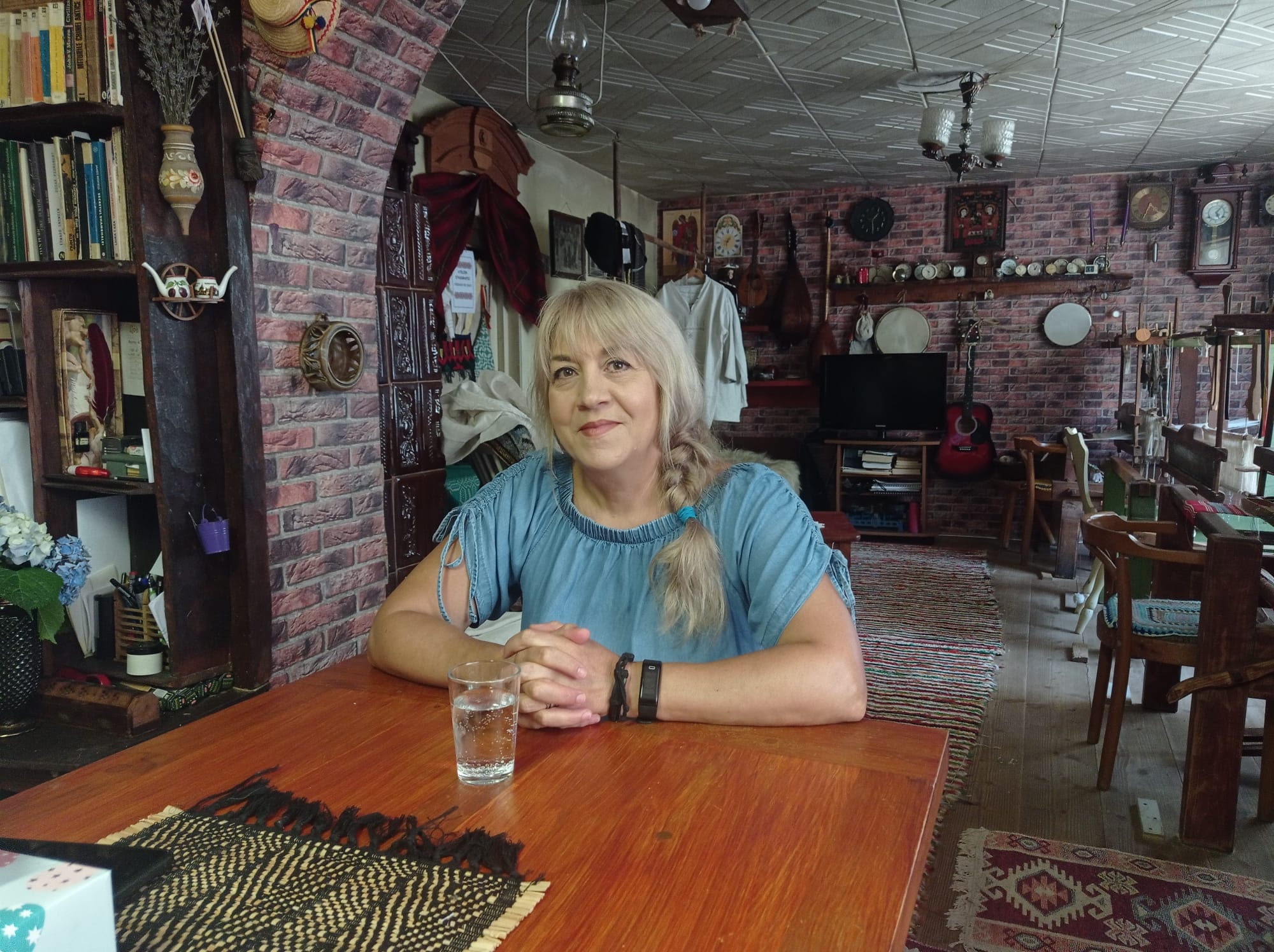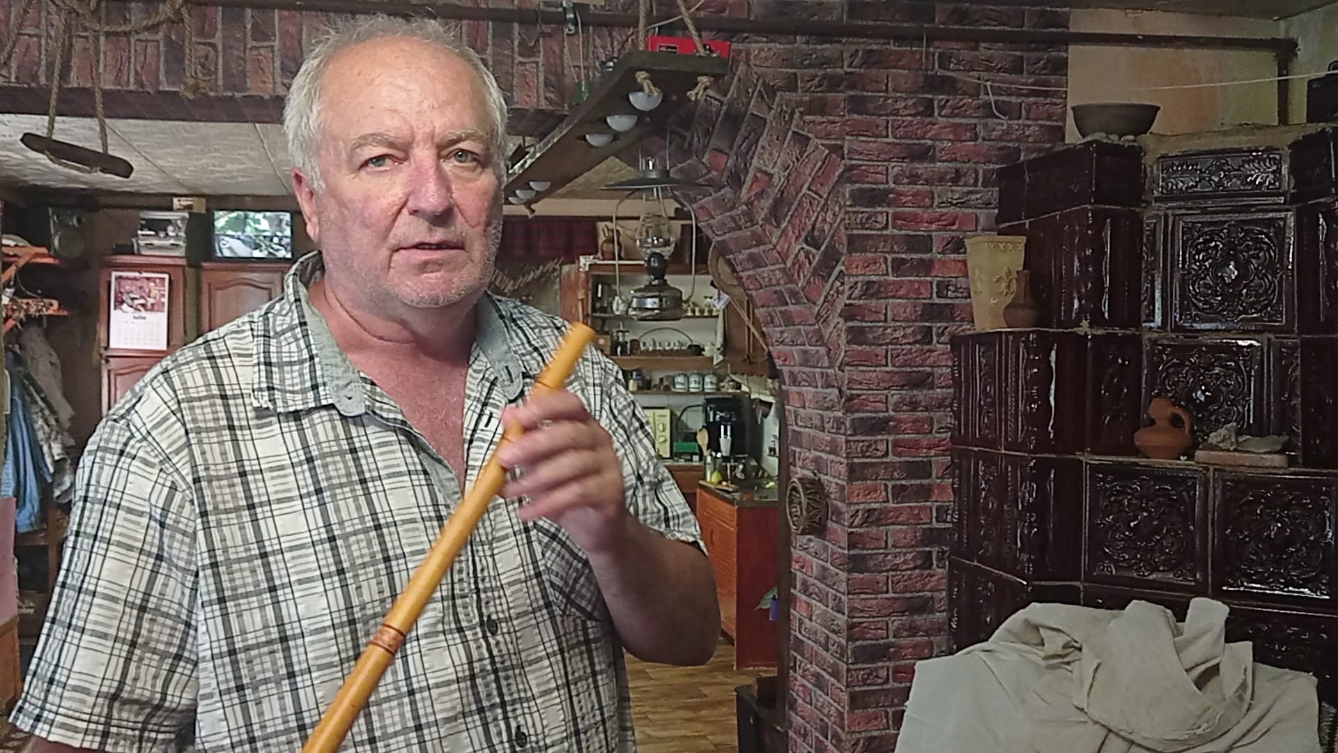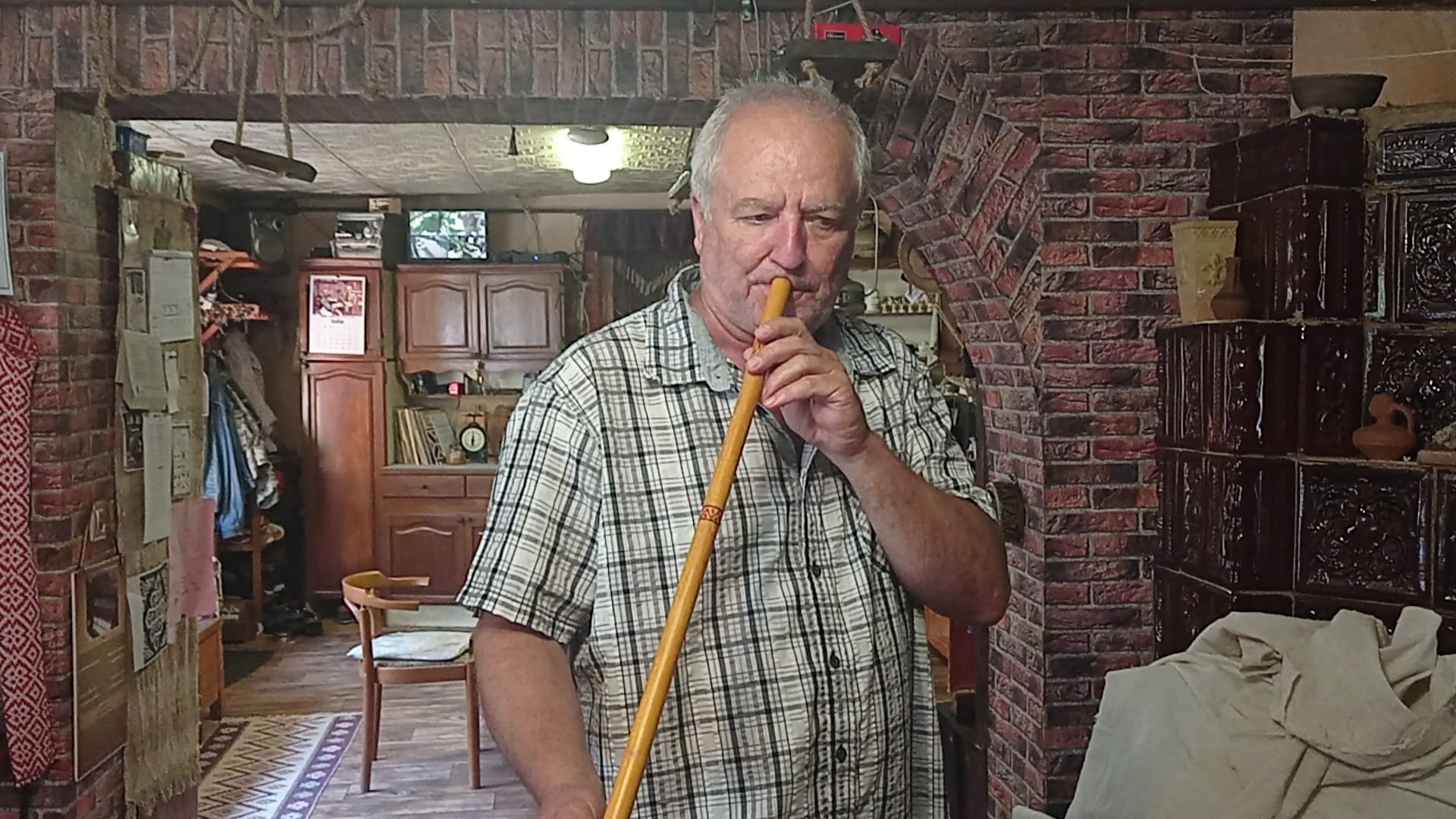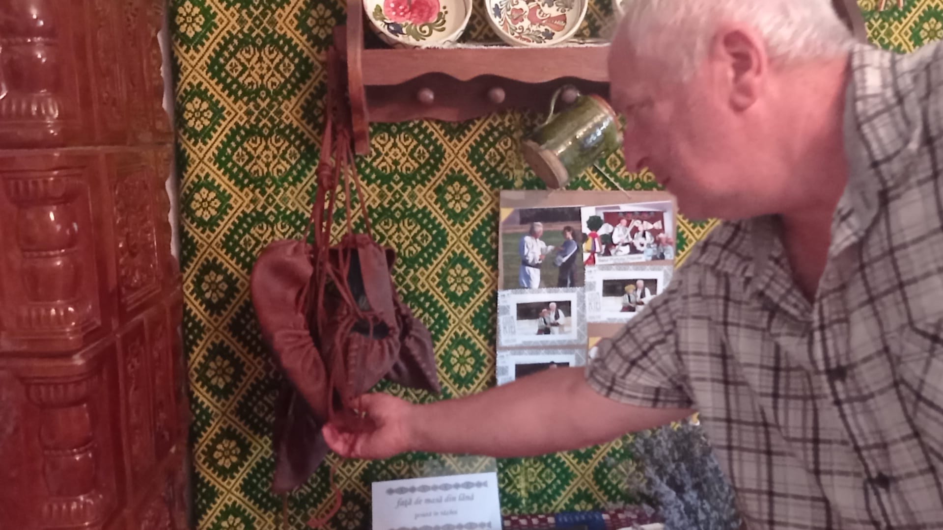 Pe Sorin Petrișor l-am întâlnit pentru prima dată la un festival culinar ținut în vara anului 2022 la Veneția de Jos. Părea unul dintre vechii trubaduri venit din alte timpuri iar muzica pe care o cânta împreună cu soția sa te ducea cu gândul la Barbu Lăutarul, starețul de cobzari lăudat de Franz Liszt. ,,M-am născut în anul 1963 la maternitatea din Victoria, am terminat Liceul Industrial din Victoria, la secția mecanică și mai târziu am făcut Facultatea de drept ,,Simion Bărnuțiu” la Sibiu, prin 2004. Acum lucrez ca paznic la stația de comprimare Transgaz de la Șinca. O perioadă de timp am lucrat la Casa de Cultură din Victoria. Am fost plecat vreo trei ani din țară, în Italia. De acolo a început să mi se miște inima spre locurile natale și a început să-mi încolțească gândul de a aduce traiul arhaic înapoi. În 2003, când m-am întors acasă, am început să cobor lucrurile vechi din pod și să reiterez acest drum spre satul de altă dată, așa cum vedeți acum. Sunt pasionat de istorie, în special de istoria religiilor dar am avut o mare dorință, de când eram mic, să cânt la un instrument tradițional vechi și am început singur, ca autodidact, pentru că pe vremea când eram copil nu am găsit la nimeni niciun sprijin ca să prind îndemânarea de a cânta la un instrument. Între timp am cunoscut un meșter care făurea instrumente de suflat în zona Sf. Gheorghe și am luat de la el fluierele și cele trei cavale. Am exersat un an de zile la indicațiile lui iar pe urmă m-am înscris la niște work-shopuri, un fel de cursuri de una sau două săptămâni, care se fac în anumite perioade ale anului, cu profesori de muzică specializați, cursuri de instrumente arhaice, tradiționale. Acolo am dus și soția, unde a deprins cântatul la cobză, altfel nu ne ridicam și nu cumpăram atâtea instrumente. Eu mai cochetez și cu chitara. Noi suntem fani Grigore Leșe. Între work-shopuri repetăm zilnic la instrumente iar aici se face multă teorie muzicală și practică. Astfel de evenimente au loc la Covasna, Harghita, Mureș, Cluj, Bacău, Buzău. Mai există locuri în care găsești bătrâni ce cântă la instrumente, de unde se poate culege folclor. La Ghimeș se face anual școală de muzică și dans arhaic, unde e tabără internațională pentru că vin și practicanți din Ungaria. Acolo sunt profesori de muzică pentru fiecare instrument- fluier, caval, cobză, cimpoi, vioară și gordună (N.R- un fel de contrabas din lemn, de mărime mai mică, un fel de violă)” a spus Sorin Petrișor. Soția lui Sorin Petrișor, Liliana Opriș, îi este și parteneră la evenimentele culturale la care  sunt invitați. A absolvit Ingineria produselor alimentare la Sibiu și a fost secretară la Centrul Școlar pentru Educație Incluzivă Victoria. ,,Cânt la cobză, tilincă, drâmbă și acum învăț să deprind cântatul la tulnic” a spus Liliana.