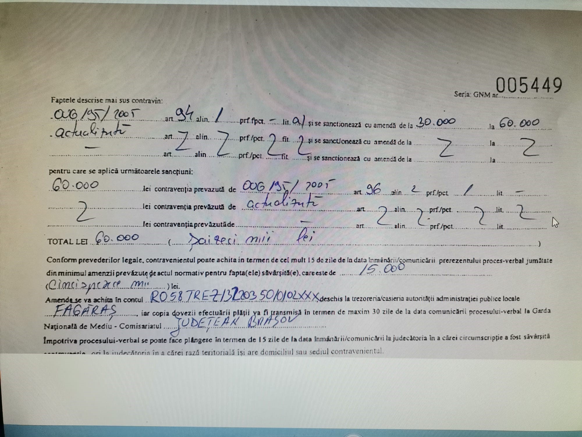 - ,,La data controlului, Municipiul Făgăraș reprezentat prin împuternicit nu a prezentat și nu deține un act de reglementare din punct de vedere al mediului, (Acord de Mediu sau Autorizație de Mediu), emis de APM Brașov pentru activitatea de depozitare a deșeurilor inerte pe terenul situat pe Șoseaua Hurezului, teren înscris în CF nr. 103998 Făgăraș, aparținând municipiului Făgăraș, domeniul privat. Este o depozitare neautorizată din punct de vedere al protecției mediului și al legislației de mediu în vigoare. Această faptă contravine prevederilor OUG nr. 195/2005, art 94, alin 1, lit. a“ au scris comisarii în document.