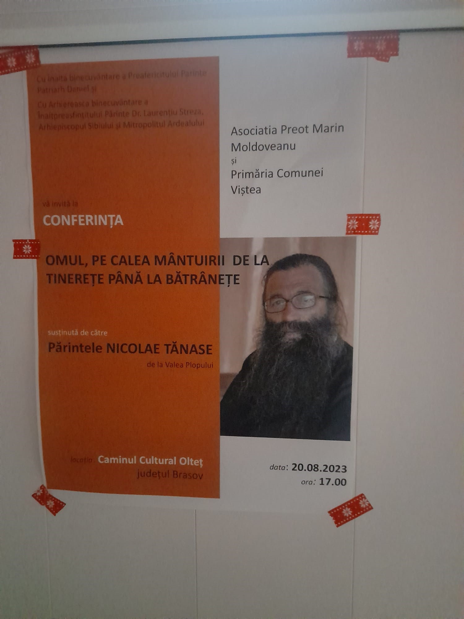 Comunitatea din Olteț este invitată duminică, 20 august a.c., începând cu ora 17.00, la căminul cultural din localitate la un eveniment special organizat de Asociația Preot Marin Moldoveanu și Primăria Viștea. Preotul Nicolae Tănase de la Valea Plopului va susține conferința cu tema ,,Omul, pe calea mântuirii de la tinerețe până la bătrânețe“. Localnicii au astfel ocazia de a-l întâlni pe părintele care a creat în Valea Plopului un rai pentru bătrânii rămași singuri sau pentru copiii care provin din familii defavorizate, părăsiți sau lăsați în plasament. La centrul din Valea Plopului,în județul Prahova, sute de oameni necăjiți sunt învățați să conviețuiască frumos și să dezvolte relații armonioase. Tată a 6 copii, preotul Nicolae Tănase a devenit părinte și pentru cei peste 300 de copii din centru cărora le poartă de grijă. Toată povestea a început în anul 1990 când a luat poziție împotriva avorturilor, convingând mamele să își nască pruncii. În anul 1997 erau doar 30 de locuri în centru, dar astăzi este tot mai neîncăpător. Resursele financiare ale asociaţiei sunt asigurate în mică parte din vânzarea obiectelor confecţionate de cei din centru, dar cel mai mult ajută sponsorii prin donații.