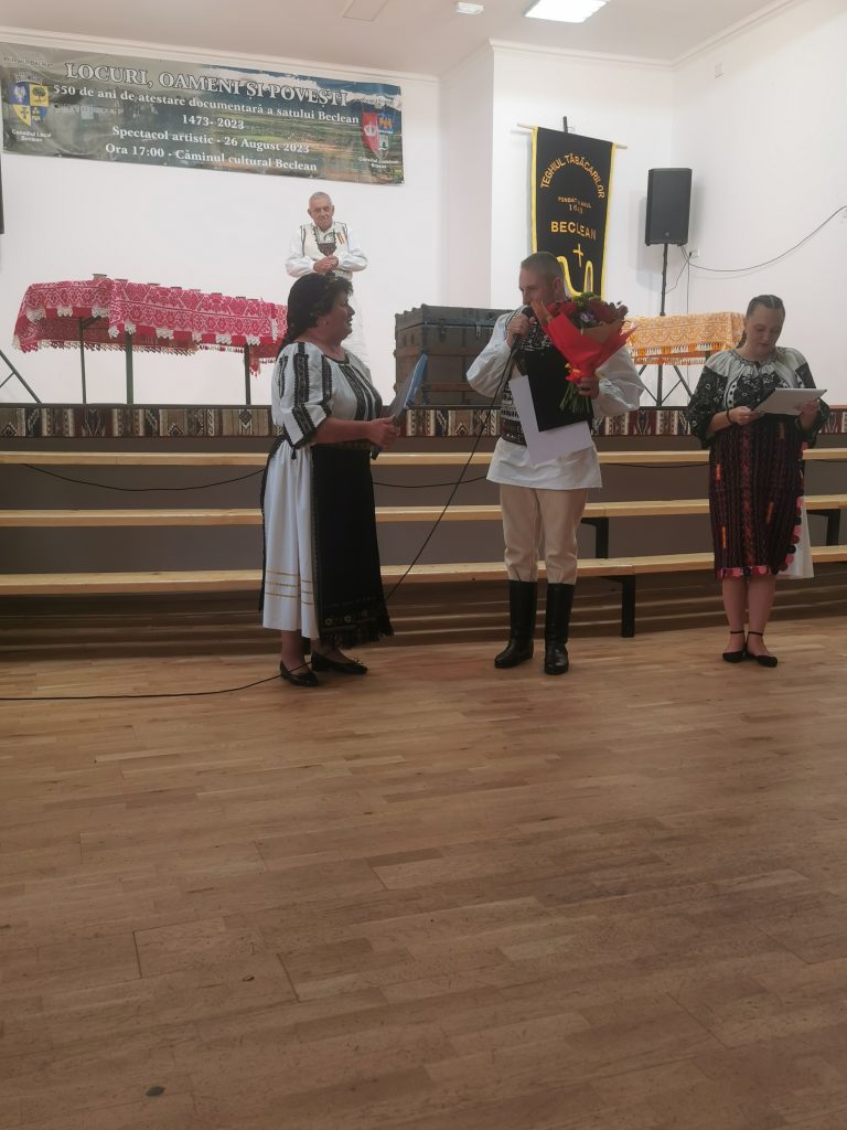 Grupul vocal ,,Suflet Beclerean“ format din sătenii talentați au prezentat un vechi obicei păstrat peste timp și pus în scenă de prof. Mariana Șandru, cunoscută interpretă de muzică populară și deopotrivă culegător de tradiții, obiceiuri și de folclor. A fost momentul artistic care amintea de țeighiul tăbăcarilor de la Beclean, unul dintre cele mai vechi din Țara Oltului, care a fost înființat la anul 1643. (Lucia BAKI)
