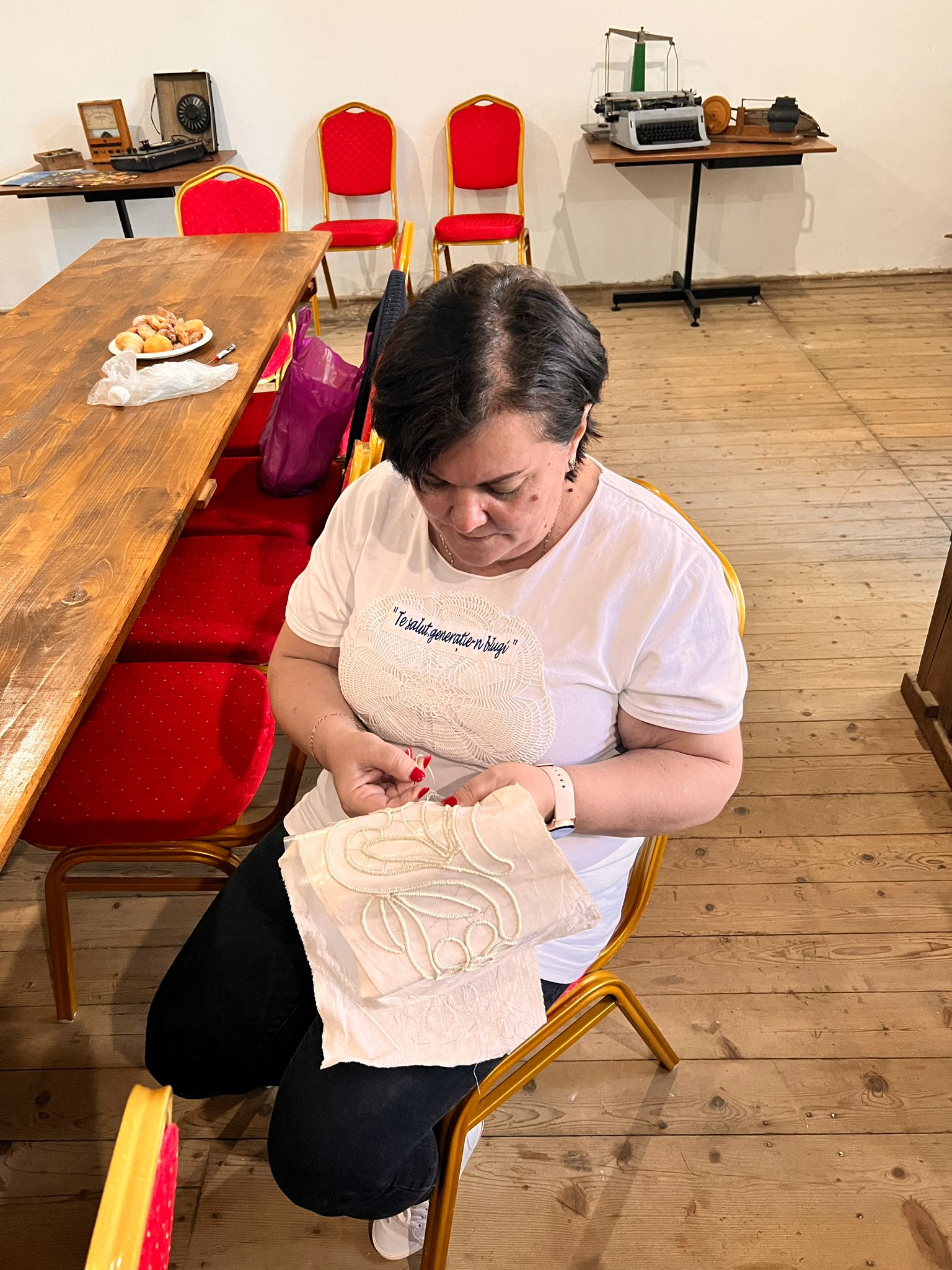 - ,,Școala veche din sat, mugur de educație în zonă. Trebuie să reînviem o tradiție, să readucem educația unde îi este locul. Primii sâmbeteni care au învățat carte au făcut-o în această clădire, care datează de la 1886. Tot ce se vede acum în clădire datează de atunci, inclusiv dușumeaua. Când Brukenthal a venit la Sâmbăta de Jos și a înființat herghelia, iar Mariei Tereza i-a făcut un castel, pentru muncitori a făcut case, o biserică și o școală. Așa se face că acest sat are acum 3 cimitire, unul la biserică, unul în deal, cel vechi, și unul în incinta herghelei unde, probabil, au fost înmormântați oamenii de la herghelie. L-am descoperit din întâmplare. Vrem să transformăm toată această incintă într-un parc tematic destinat oamenilor din sat, iarna să vină la țesut, la povești și la gogoși, iar vara, la distracție“ a spus Gheorghe Pușcașu, președintele asociației.