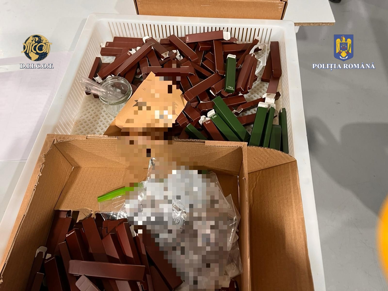 De asemenea, s-a stabilit că în perioada octombrie 2022 – septembrie 2023, membrii grupului infracțional au produs în vederea comercializării peste 100.000 de dispozitive tip VAPE care conțineau substanțe care produc efecte psihoactive ( HHC, HHC-P, HHC-O, H4CBD, THC-P) de natură a pune în pericol viața persoanelor care le consumă.