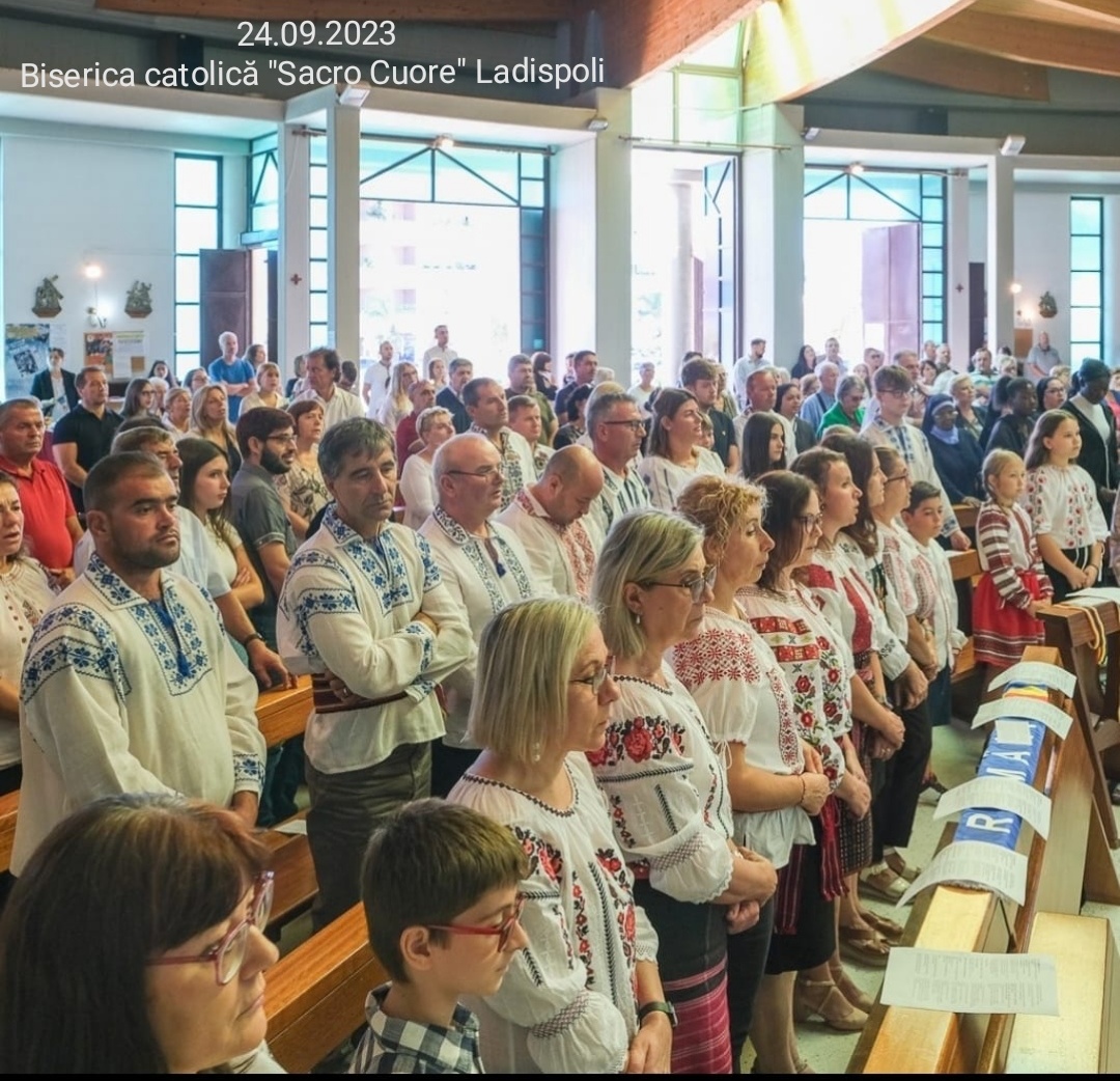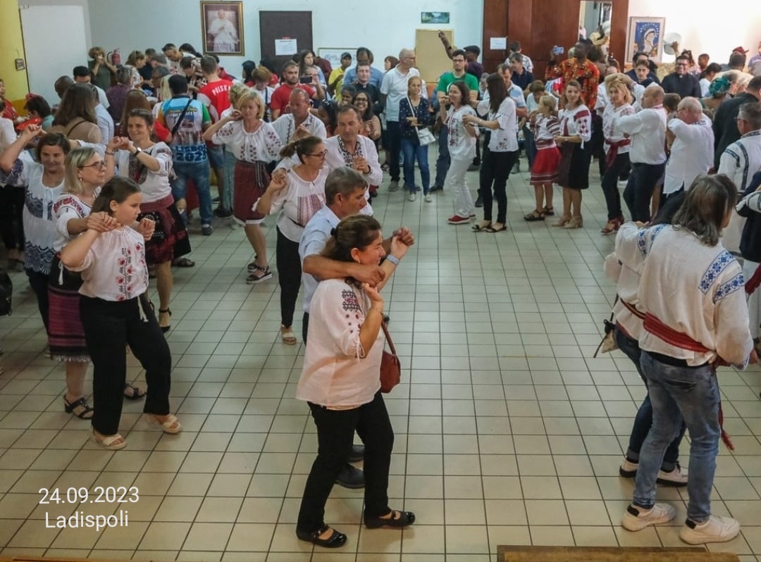 Încă de dimineață, cu mic cu mare comunitățile din Ladispoli  au participat la liturghia de duminică. Începând cu ora  11.00, la Biserica „Sacro cuore” Ladispoli, episcopul italian Gianrico Ruzza, preoții parohi, credincioșii de multe naționalități au participat la liturghia dedicată migrantilor și refugiaților. Aceste momente de rugăciune intensă cu versuri și cântece religioase în limba comunităților participante au fost urmate de o sărbatoare în incinta bisericii. Fiecare naționalitate a prezentat  jocuri, cântece și specialități culinare ale poporului și locului natal. S-au gustat reciproc produse din Moldova, România, Albania, Filipine, Mexic, Nigeria, Polonia, Sri Lanca. De organizarea comunitatii catolice din Ladispoli s-a ocupat preotul paroh Isidor Mârț. În orașul Ladispoli conviețuiesc multe familii de români, cele mai numeroase fiind din zona Făgărașului și a Moldovei. Românii din Ladispoli au pregătit un stand cu preparate culinare românești din care n-au lipsit zacusca, salata boef, colaci, prăjituri de casă, sarmale, mici. Antrenul a fost susținut de participanții dansatori care și-au invitat  semenii la ,,Brașoveancă“. S-au implicat în organizarea săerbării  credincioșii români din comunitățile din Ladispoli, Civitavecchia și Cesano. S-au împletit în armonie toate dansurile de pe mapamond, s-au degustat preparate de pe toate continentele.