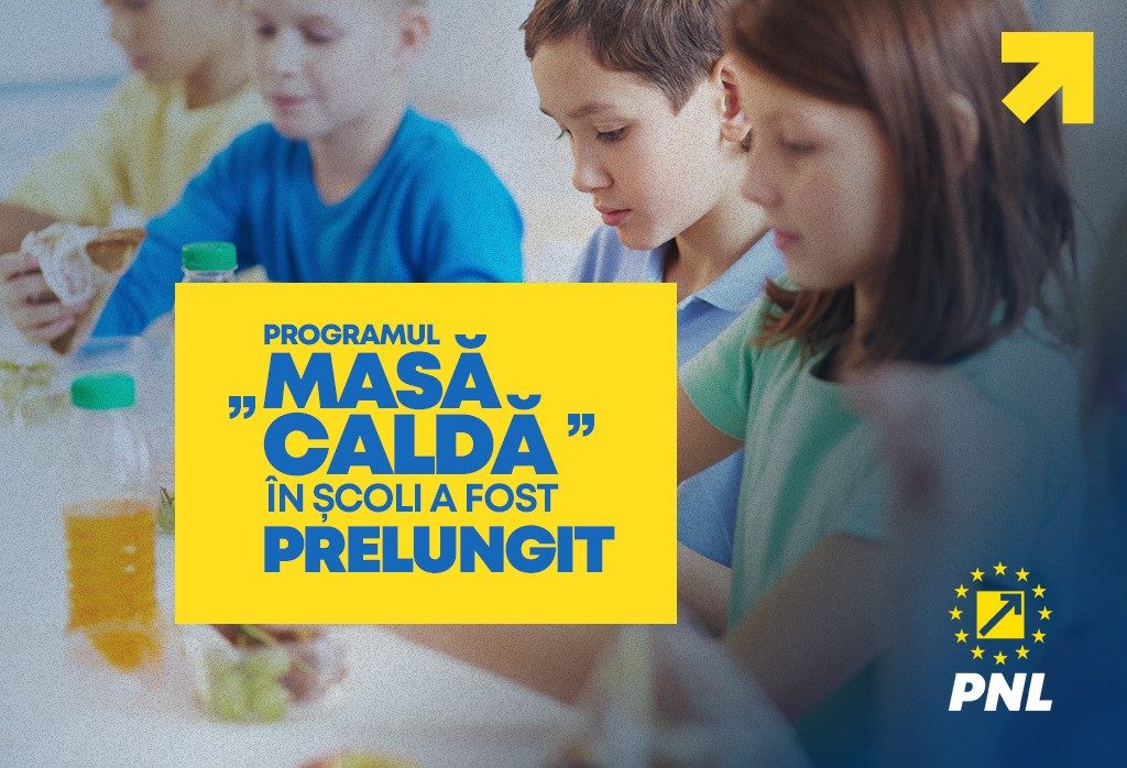 Aproximativ 180.000 de elevi și preșcolari din 450 de unități de învățământ vor primi o masă caldă pe zi sau un pachet alimentar. Ministra liberală a Educației a decis continuarea și în acest an a programului-pilot ”Masă caldă”. Potrivit noii legi a învățământului preuniversitar, din anul următor programul-pilot va fi înlocuit cu programul ”Masă sănătoasă”, care va avea peste un milion de beneficiari.