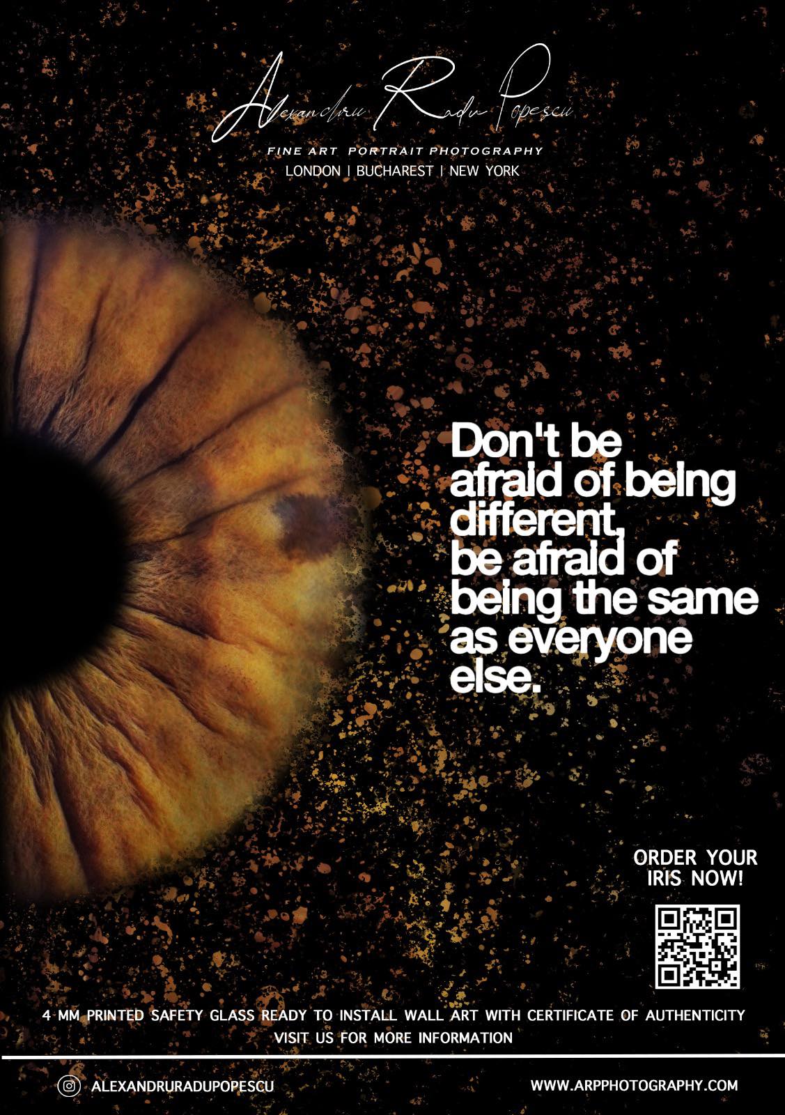Al.R.P.:  Iris a plecat în facultate, în 2019,  pentru  a prezenta identitatea națională.  La început a fost greu, fiind pandemie, să-mi găsesc clienți. Mă rugam de colegii de cameră  să-mi pozeze, să testez proiectul pe ei, dar fugeau de mine. Nu aveam acces la persoane atunci. Nu este proiectul Iris,  este proiectul unic. Am testat foarte  mult, cu diferite lentile, lumini, vreun an, până am ajuns  la lentila  pe care o am acum.