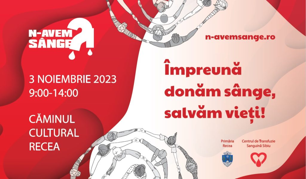 Așadar, locuitorii comunei Recea și ai satelor din împrejurimi, sau chiar și din orașele invecinate, Făgăraș și Victoria, sunt invitați vineri, 3 noiembrie 2023, în intervalul 09:00 – 14:00 la Căminul Cultural Recea, să doneze sânge.