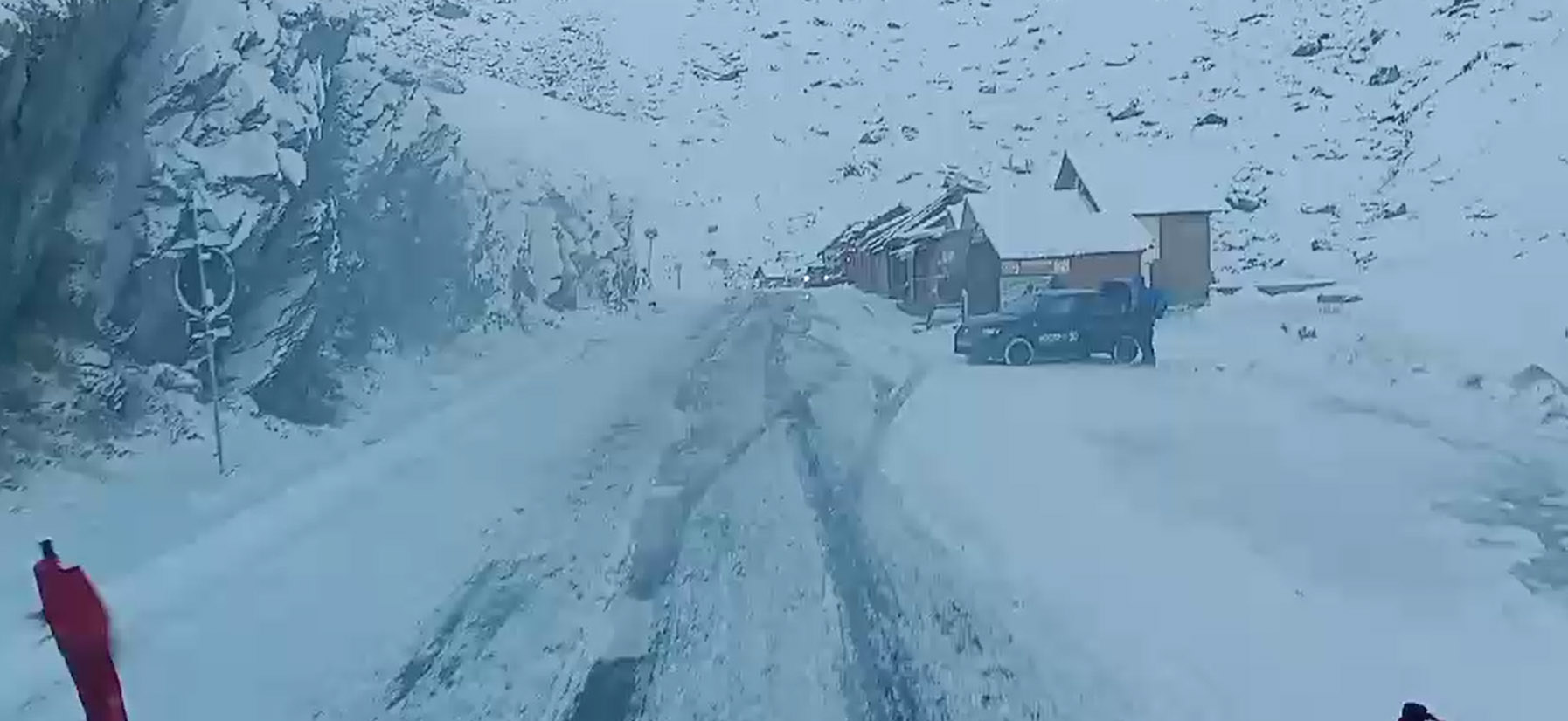 Stratul de zăpadă pe Transfăgărășan, pe porțiunea cuprinsă între Bâlea Cascadă  și Piscul Negru,  măsoară în jur de 10 cm,.   Utilajele DRDP Brasov acționează pentru curățarea drumului cu materiale antiderapante însă condițiile de circulație rămân în continuare foarte dificile.