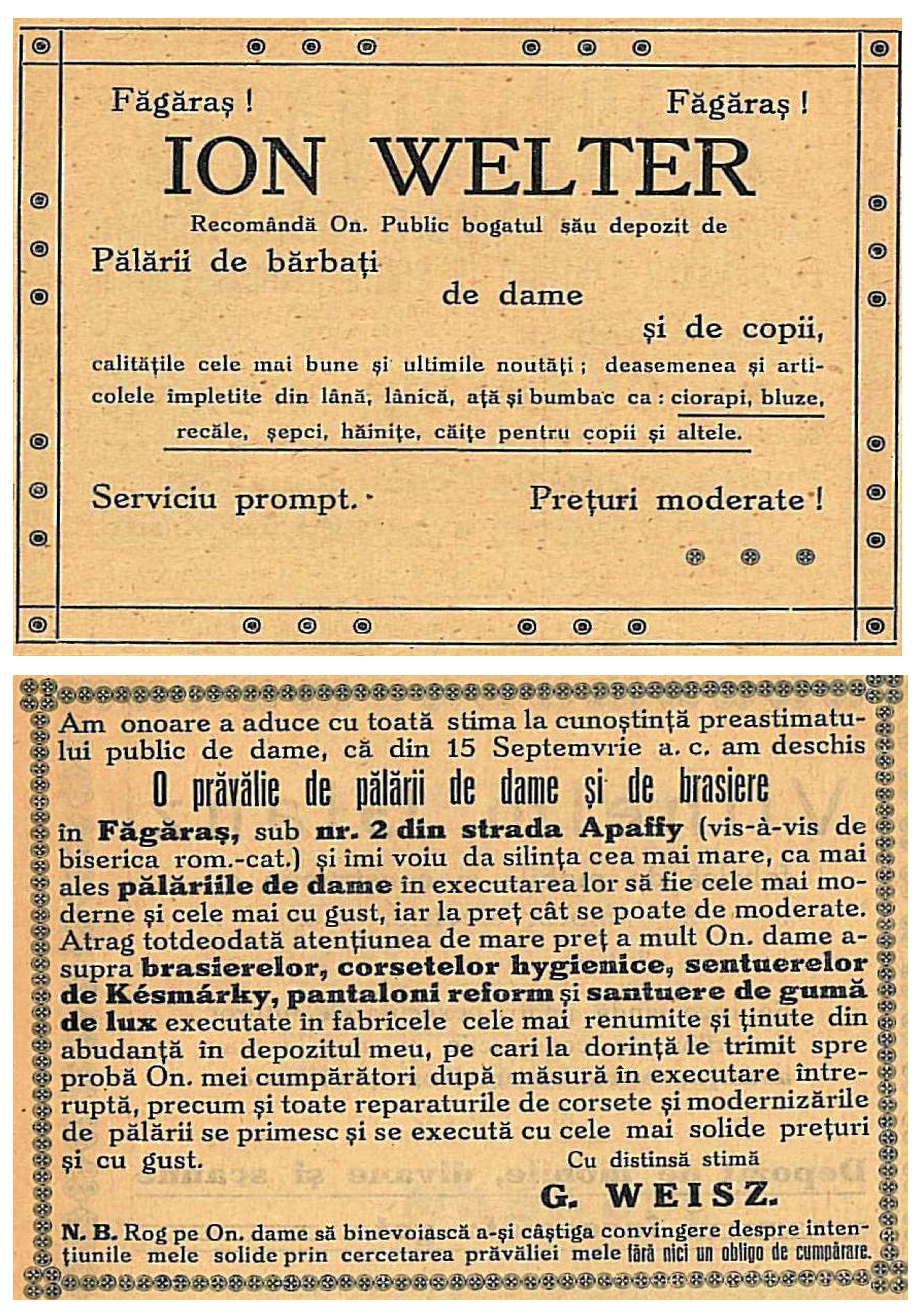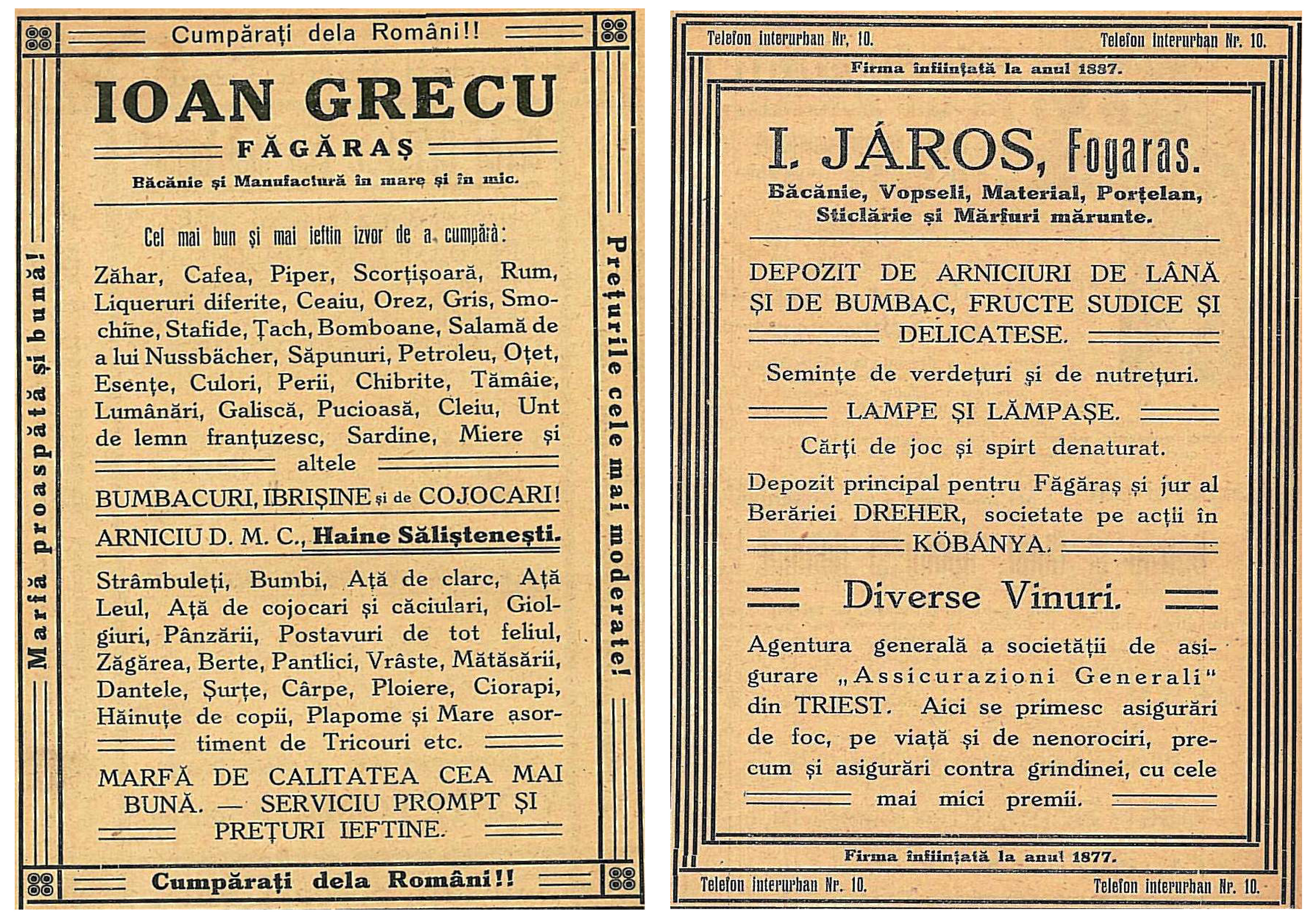 - ,, Domnul Constantin Pop, lucră numai cu ucenici români şi a editat pînă acum mai multe cărţi tipărite aici. Cu întocmire deosebită, s-a înfiinţat în Făgăraş a doua tipografie românescă, împreunată şi cu librărie a d-lui Jer. Preda, carele mai întâi în casele lui Herman şi-a deschis librăria în 1911, iară din 1912 şi tipografia în casele Domnului Costi Toma cu maşini şi material nou şi modern. Amintesc şi Compactoria română Ioan Haţegan din Făgăraş, începută încă prin anii 1898-1900 pe lîngă cea dintâi librărie română ,,Minerva” din Făgăraş, înfiinţată de intreprinzătorul în toate direcţiunile Iuliu Dan, protopop în companie cu Ioan Berescu, învăţător. Această compactorie de mult este încvartirată în casele Romanoaiei, azi ale institutului ,,Furnica” scria pr. Aron.