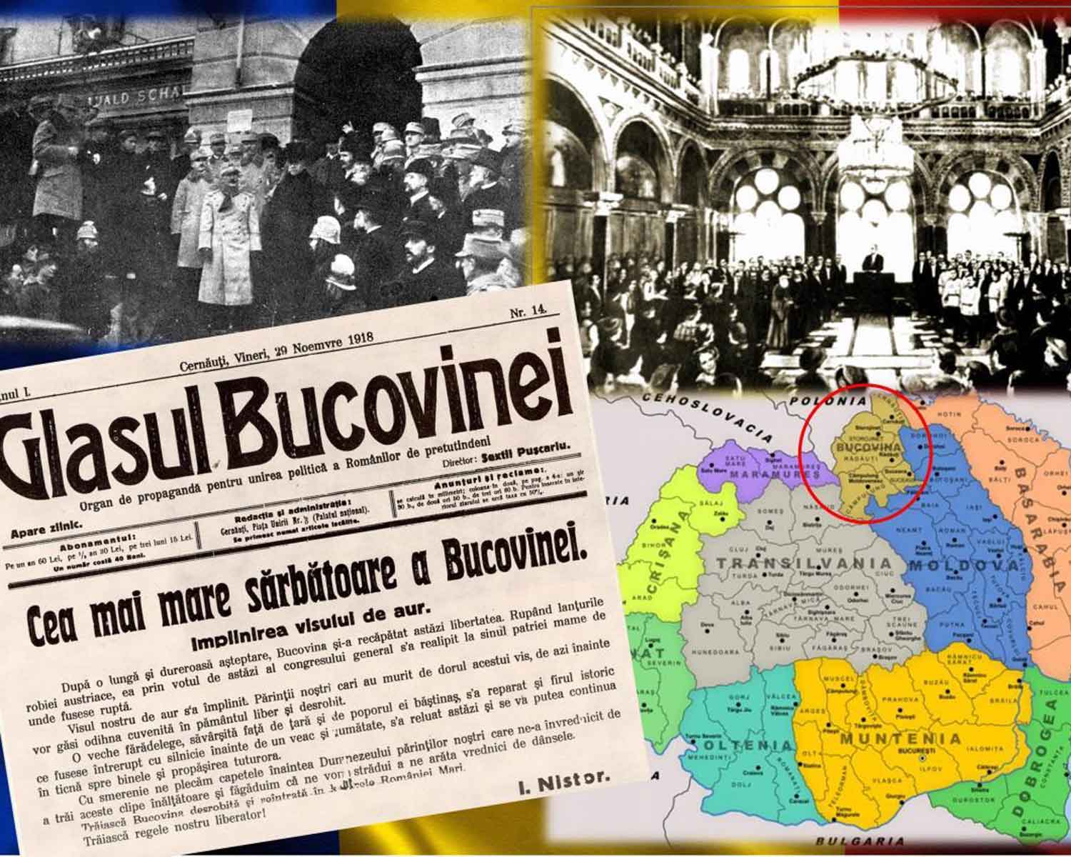 Printre primele periodice care au apărat interesele românilor a fost ,,Bucovina” scoasă de fraţii Gheorghe şi Alecu Hurmuzachi, urmată de alte publicaţii: Revista Politică”, ,,Gzeta Bucovinei”, ,,Deşteptarea Bucovinei”. Merită menţionată sărbătoarea de la Putna din 1871 organizată de un comitet format din Ioan Slavici, Mihai Eminescu, C-tin Istrati, A.D. Xenopol cu prilejul aniversării a 400 de ani de la zidirea mănăstirii Putna, o adevăratăn demonstraţie a solidarităţii naţionale a tuturor românilor. Au participat şi Mihail Kogălniceanu, Vasile Alecsandri, Grigore Tocilescu, Ciprian Porumbescu care a interpretat ,,Hora a Daciei întregi”. Un moment important în organizarea luptei naţionale a românilor din Bucovina l-a reprezentat constituirea în martie 1892 a Partidului Naţional Român din Bucovina, programul acestuia fiind publicat încă din 2 mai 1891 în ,,Gazeta Bucovinei. În preajma declanşării Primului Război Mondial, din cauza politicii de deznaţionalizare, români mai erau doar 300.000, fiind depăşiţi cu puţin de ruteni, se adăugau 200.000 de germani, polonezi, armeni, maghiari. Bucovina a fost teatru de război, fiind ocupată de trei ori de trupele ruseşti şi recucerită de tot de atîtea ori de cele austro-ungare. Se adăuga divizarea elitei politice româneşti, între adepţii unirii cu România şi cei, foarte puţini, conduşi de Aurel Onciul, care propunea o înţelegere cu ucrainienii în vederea împărţirii între România şi Ucraina. Delegaţii Radei ucrainene au cerut la Brest-Litovsk ca Bucovina, Galiţia şi Carpato-Rusia să fie incluse în Ucraina de Vest. Manifestul împăratului Carol I ,,către popoarele mele credincioase” (3/16 octombrie 1918) proclama federalizarea Imperiului Austro-Ungar, prin crearea a şase state: austriac, maghiar, ceh, iugoslav, polonez, ucrainean. Nu se spunea nimic despre românii din Transilvania şi Bucovina.
