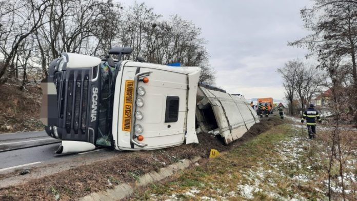 - „DN 1, km. 277+500, la intrarea în localitatea Porumbacu de Jos, traficul se desfășoară alternativ după ce sensul Brașov – Sibiu a fost blocat de un ansamblu rutier care s-a răsturnat. Pe fondul vitezei neadaptate în curbă la dreapta, un sibian în vârstă de 44 de ani, în timp ce conducea ansamblul dinspre Sibiu spre Brașov, a pierdut controlul direcției de deplasare și s-a răsturnat pe partea carosabilă a sensului opus”, anunță Elena Welter, purtătorul de cuvânt al IPJ Sibiu.