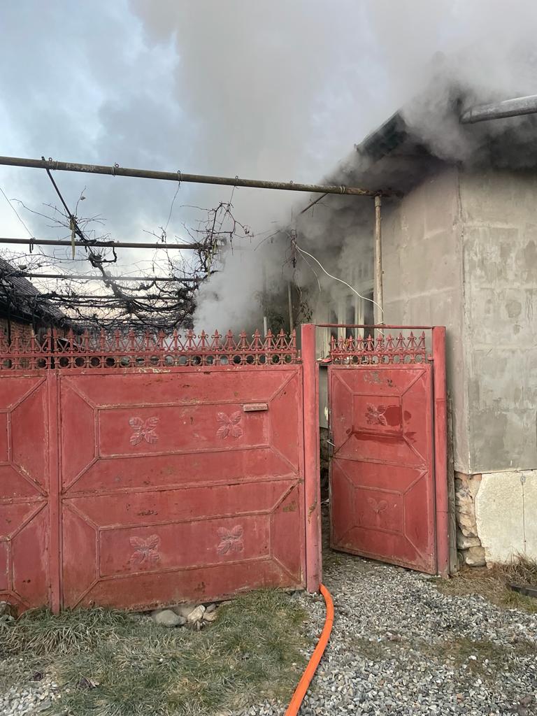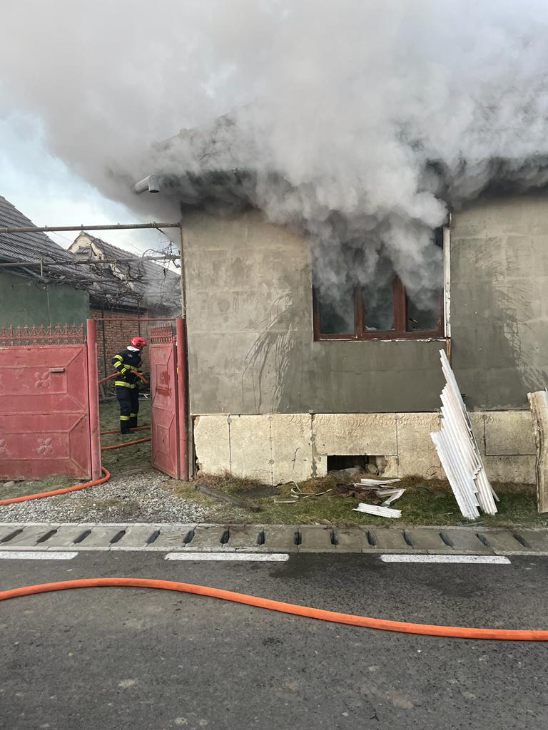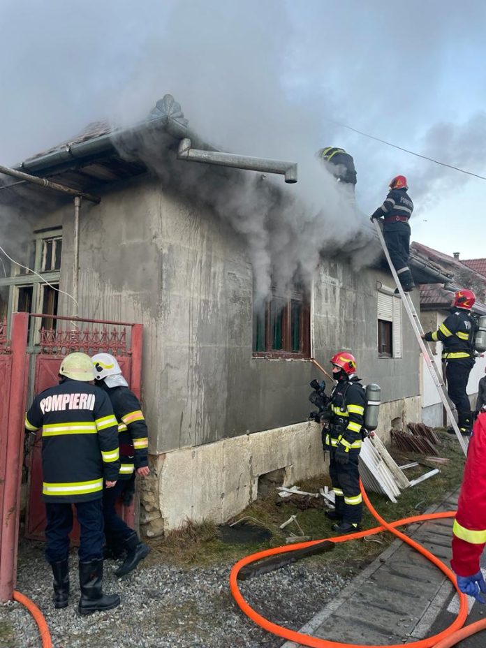 Foto. O casă din Arpașu de Sus a luat foc. Un bărbat de 62 de ani n-a mai putut fi salvat