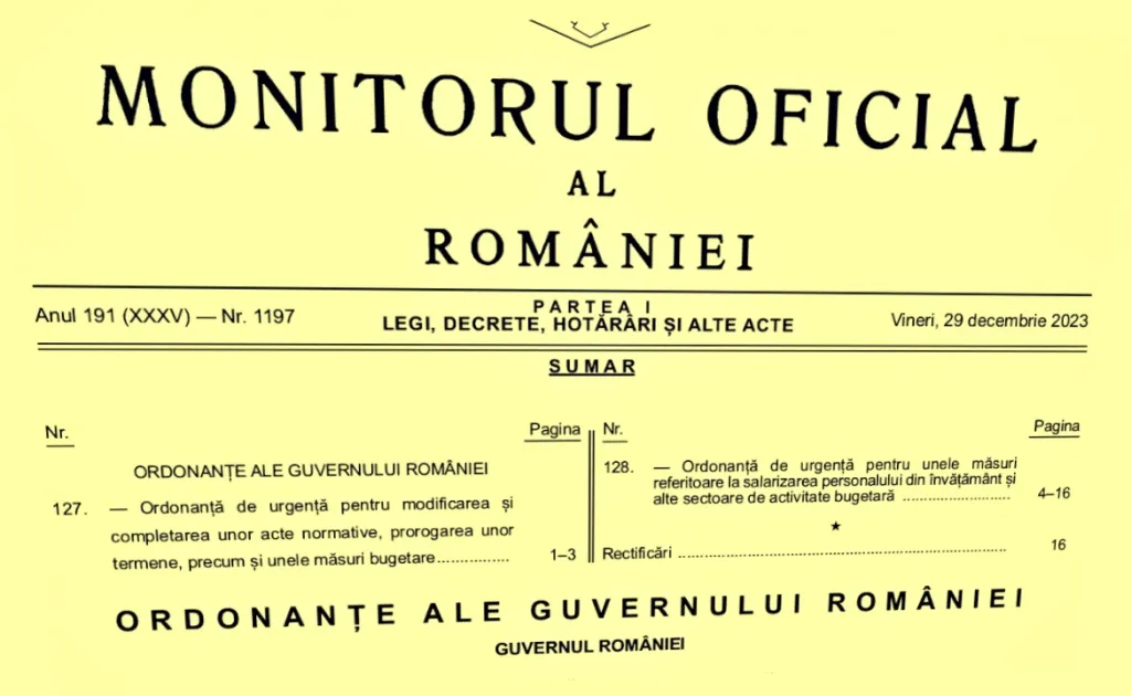 „Începând cu data de 1 ianuarie 2024, salariile de bază ale personalului din învățământ se stabilesc conform anexei la prezenta ordonanță de urgență”, scrie în actul normativ.