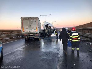 În accident au fost implicate două camionete şi un TIR pe A1, la km 245, ieşirile spre Păltiniş şi Mediaş, pe sensul Sibiu – Sebeş, potrivit Poliţiei.