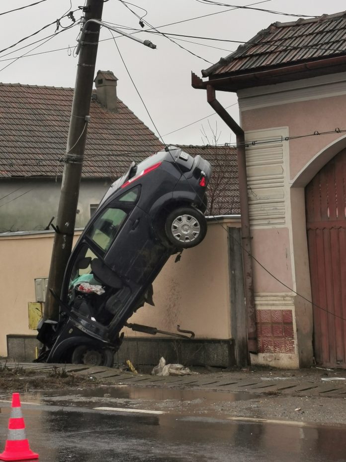 ,,Consultăm imaginile de pe camerele de luat vederi care sunt montate în zonă pentru a vedea modul în care s-a produs accidentul. Conducătorul auto s-a ales cu o vânătaie la față, dar a fost transportat la spitalul din Făgăraș pentru investigații“ au spus polițiștii.