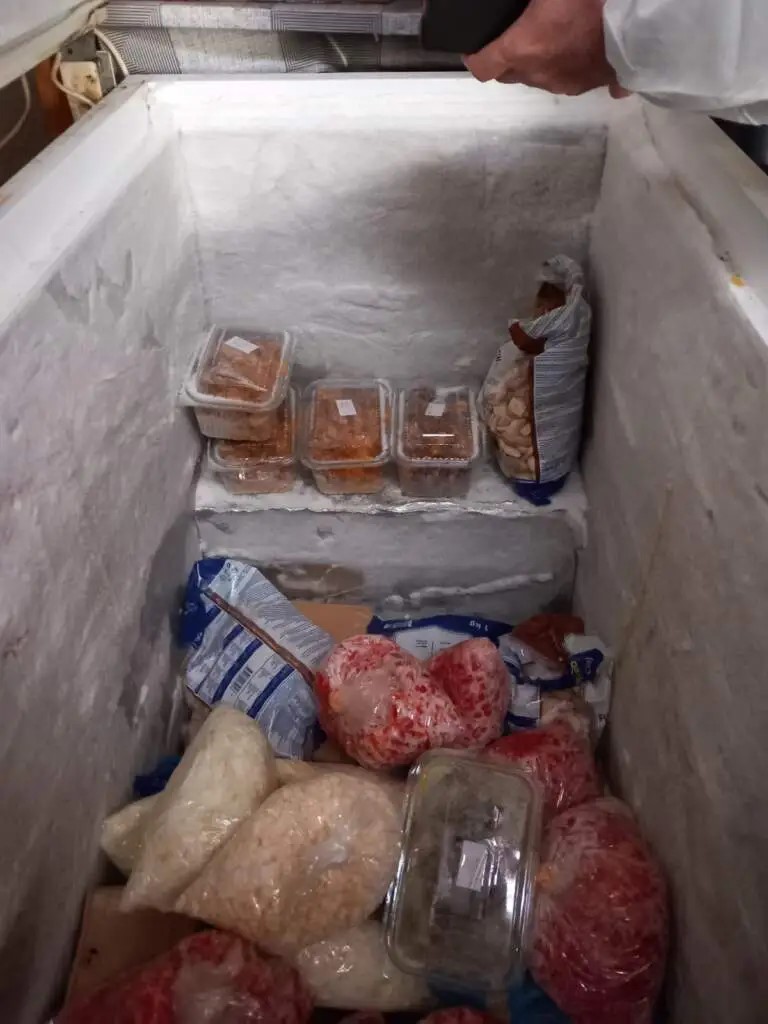 - au fost identificate în lăzile frigorifice produse care nu prezintă elemente de identificare sau la care a fost schimbată starea termică, utilizarea unor ustensile neprofesionale (cuțite cu nituri și găleți din plastic)