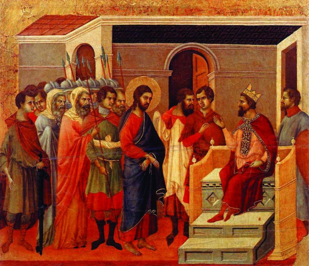 ,,Şi îndată dimineaţa, arhiereii, ţinând sfat cu bătrânii, cu cărturarii şi cu tot sinedriul şi legând pe Iisus, L-au dus şi L-au predat lui Pilat” (Marcu 15:1) ,,Deci Pilat L-a dus afară pe Iisus şi a şezut pe scaunul de judecată, în locul numit pardosit cu pietre, iar evreieşte Gabbata” (Ioan 19:139)