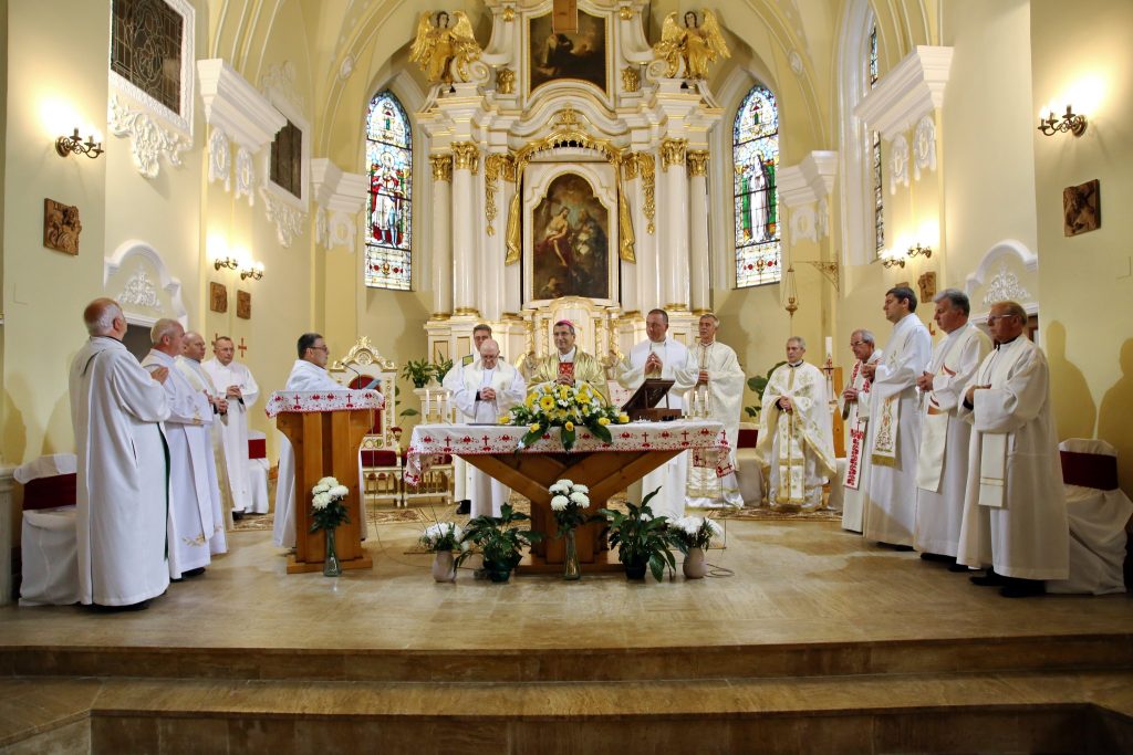 Altarul principal domină biserica şi a fost realizat de Ballo Jozsef. În partea de jos a altarului se află icoana Sfintei Treimi, iar în partea superioară o scenă din viaţa Sf. Augustin. Icoana Sfintei Treimi este rotativă, iar în spatele iei se afla statuia Maicii Domnului. În sărbătorile mariane se putea întoarce la 180 grade şi astfel lăsa la vedere statuia Fecioarei Maria. Astăzi icoana nu se mai poate roti din cauza degradării, iar statuia Maicii Domnului a fost amplasată în biserică pe latura din dreapta a ei. Pictura Sfintei Treimi datează, după unii cercetători, din secolul XIX, dar alţii consideră că ar fi fost pictată la sfîrşitul sec. XVIII. Ultima curăţare a acestei picturi a fost realizată de Pr. Ferencz Andras în anul 1975. Anvonul a fost donat de Ballo Antal în sec. XVIII. În partea inferioară a acestuia sînt pictaţi cei patri evanghelişti, iar la mijloc chipul Domnului Iisus Hristos cu crucea. În partea de sus este statuia îngerului Mihail cu aripi care stă pe diavolul pe care îl învinsese. Anvonul este bogat aurit. ,,Ultima recondiţionare am făcut-o eu personal. Am achiziţionat foiţă de aur şi am lipit-o. Un lucru foarte migălos, dar în acelaşi timp foarte frumos” a mai spus Sandor Palko. Altarul Sf. Francisc de Assisi este un alt punct de atracţie al bisericii şi a fost donaţia lui Halmagyi Istvan în sec. XVIII. În partea inferioară se vede apariţia de la Alverna, iar în partea superioară este simbolizat Sf. Ştefan, regele Ungariei care oferă coroana şi ţara Sfintei Fecioare.