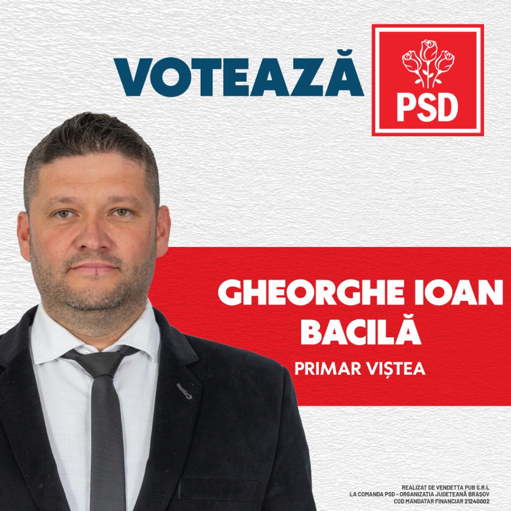 Candidatul PSD pentru funcția de primar a Comunei Viștea este Ioan Gheorghe Băcilă. Este născut și crescut în Rucăr, are 42 de ani și o frumoasă familie cu doi copii, un băiat și o fetiță. A lucrat doar în mediul privat, fiind administratorul mai multor societăți comerciale.