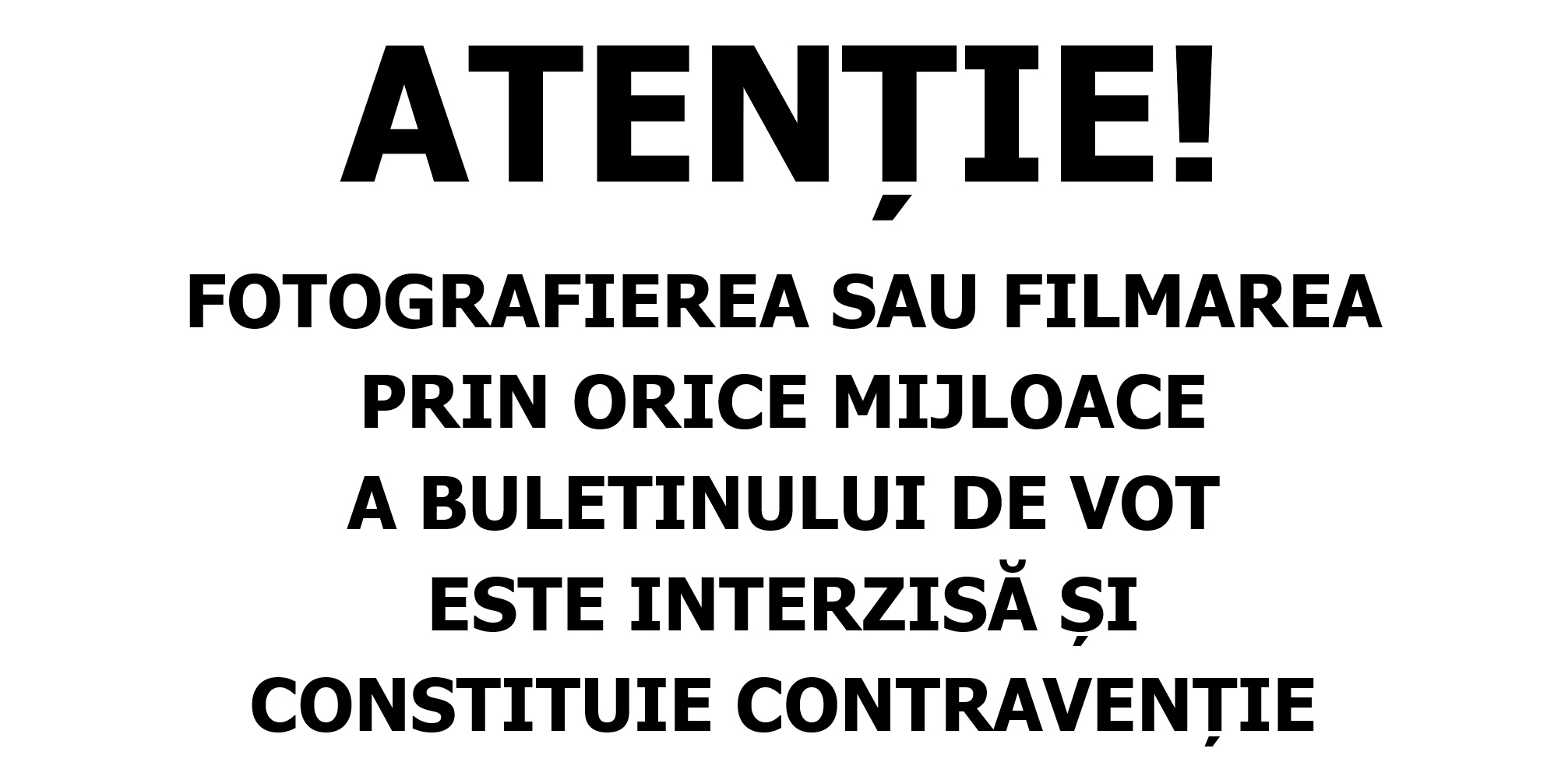 Afișul transmite următorul mesaj: „ATENȚIE! Fotografierea sau filmarea prin orice mijlocace a buletinului de vot este interzisă și constituie contravenție”.