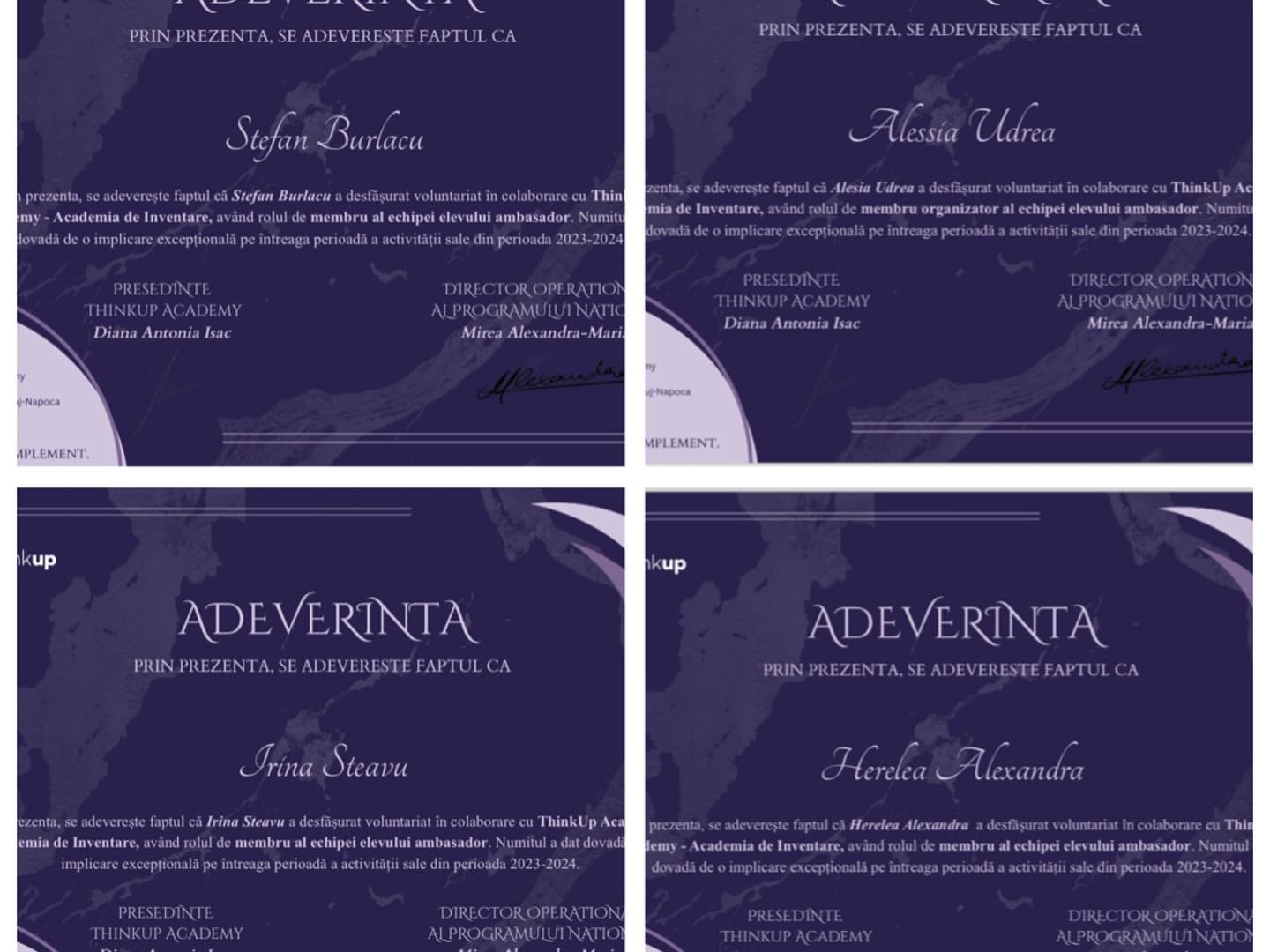 Un grup de elevi de la CN ,,Doamna Stanca“ din Făgăraș a fost premiat în cadrul programului Think-Up Academy. Vlad Pedestru din clasa a XI-a B, este elevul ambasodor, iar echipa lui este formată din elevii Ștefan Burlacu, Alexandra Helerea, Irina Steavu și Alessia Urdea, din aceeași clasă. Cu sprijinul specialiștilor aceștia au organizat ateliere de educație financiară, inteligență emoțională și au redactat o lucrare de cercetare. Toate aceste activități au fost organizate pentru elevii școlii și au contribuit semnificativ la dezvoltarea competențelor și dobânzilor de noi cunoștințe.