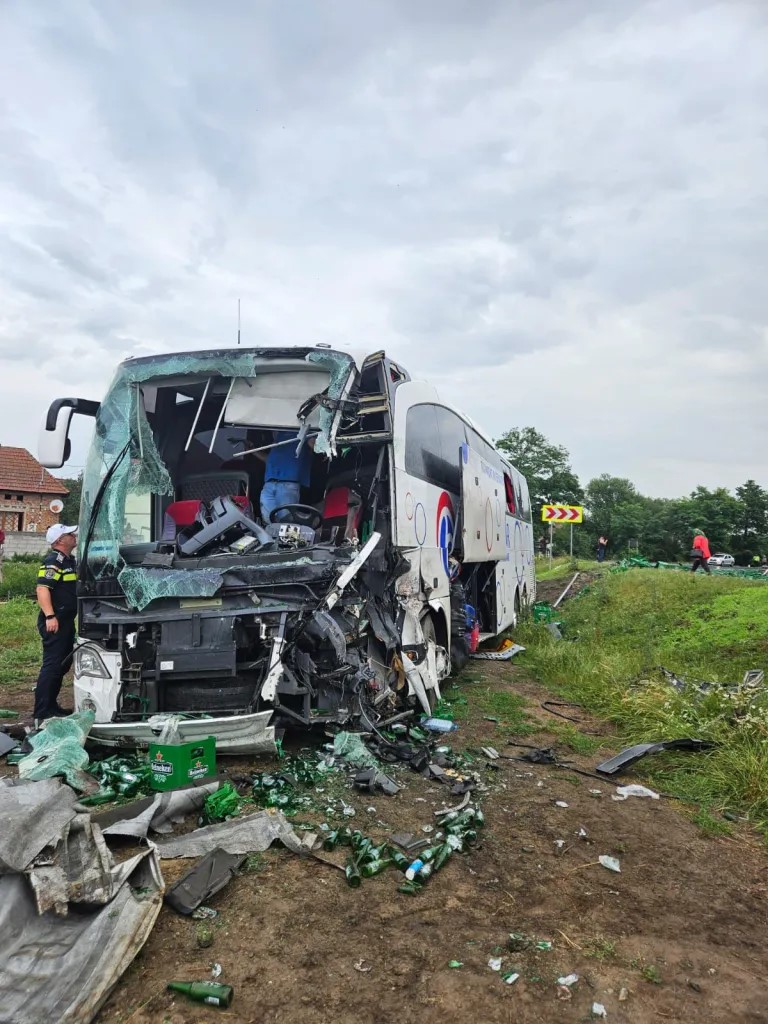 Celelalte 53 de persoane rămase din autocar au fost duse la sală de sport din localitate aşteptând să fie preluate de un alt mijloc de transport, transmite AGERPRES