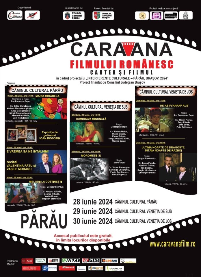 Programul complet al „Caravanei filmului românesc” la Părău, în perioada 28 – 30 iunie 2024, este următorul: