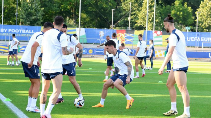 La antrenamentul care a durat aproximativ o oră, selecţionerul Edi Iordănescu a exersat şi planul tactic pentru marele meci de miercuri. În cazul în care obţin cel puţin un punct, tricolorii vor fi siguri de locul în următoarea fază a Campionatului European.