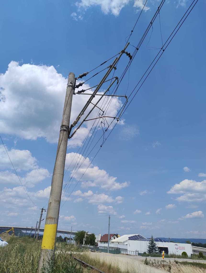 Potrivit CFR, din primele informaţii transmise de la faţa locului, de către personalul feroviar al SRCF Braşov, o autobasculantă, care aparţine contructorului ce desfăşoară lucrări de reabilitare pe firul I, a lovit un stâlp de susţinere şi a avariat inclusiv componentele sistemului de alimentare cu energie electrică a liniei de contact de pe firul II.
