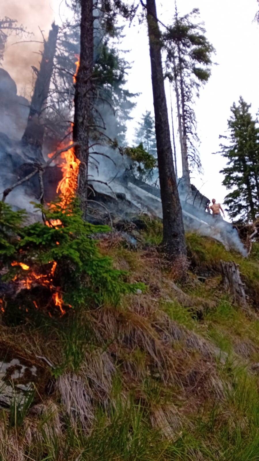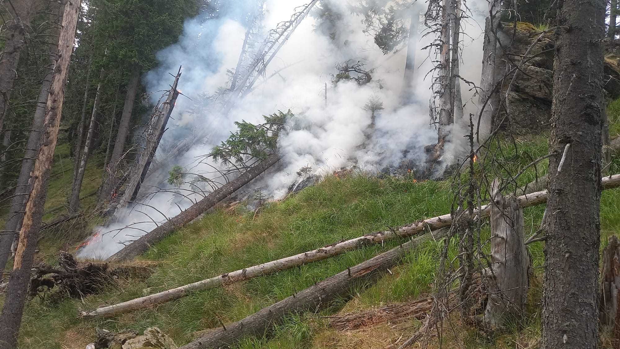 - ,,Focul a izbucnit sub Muchia Gârdomanul, pe Ucișoara, la cota de 1500 m. Încă de la început noi, Ocolul Silvic Pădurile Făgărașului“ ne-am mobilizat și am trimis oameni aus pentru a intervene. Accesul este greu în acea zonă care aparține de Ocolul Solvic Făgăraș. Spre seara a ajuns și elicopterul care poate va reuși să stingă focarele“ a declarat Ionel Lazea, șeful Ocolului Silvic Pădurile Făgărașului.