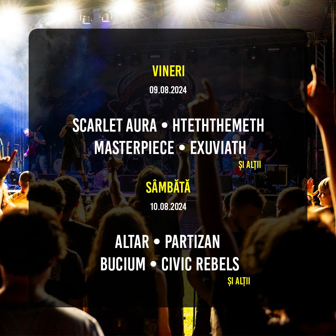 - Vineri, 9 august 2024: Scarlet Aura, HTETHTHEMETH, Masterpiece, Exuviath și alții.