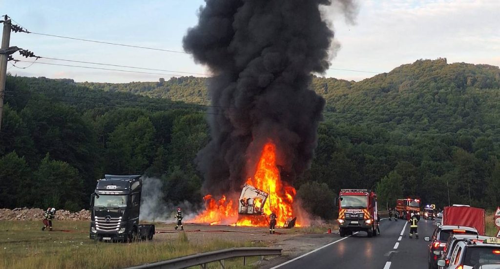Potrivit I.P.J. Brașov, traficul rutier s-a desfășurat cu dificultate pe DN1, în zona localității Perșani, ca urmare incendiului apărut la autocamionul aflat în mers.