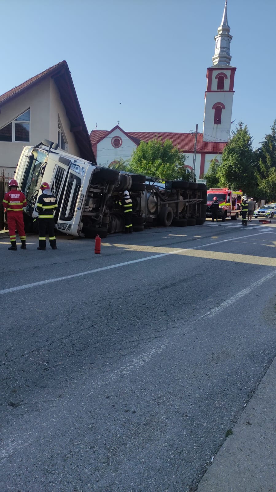 Un accident rutier s-a petrecut în urmă cu puțin timp în fața primăriei Părău. Un TIR s-a răsturnat din cauza vitezei neadaptate la condițiile de drum.