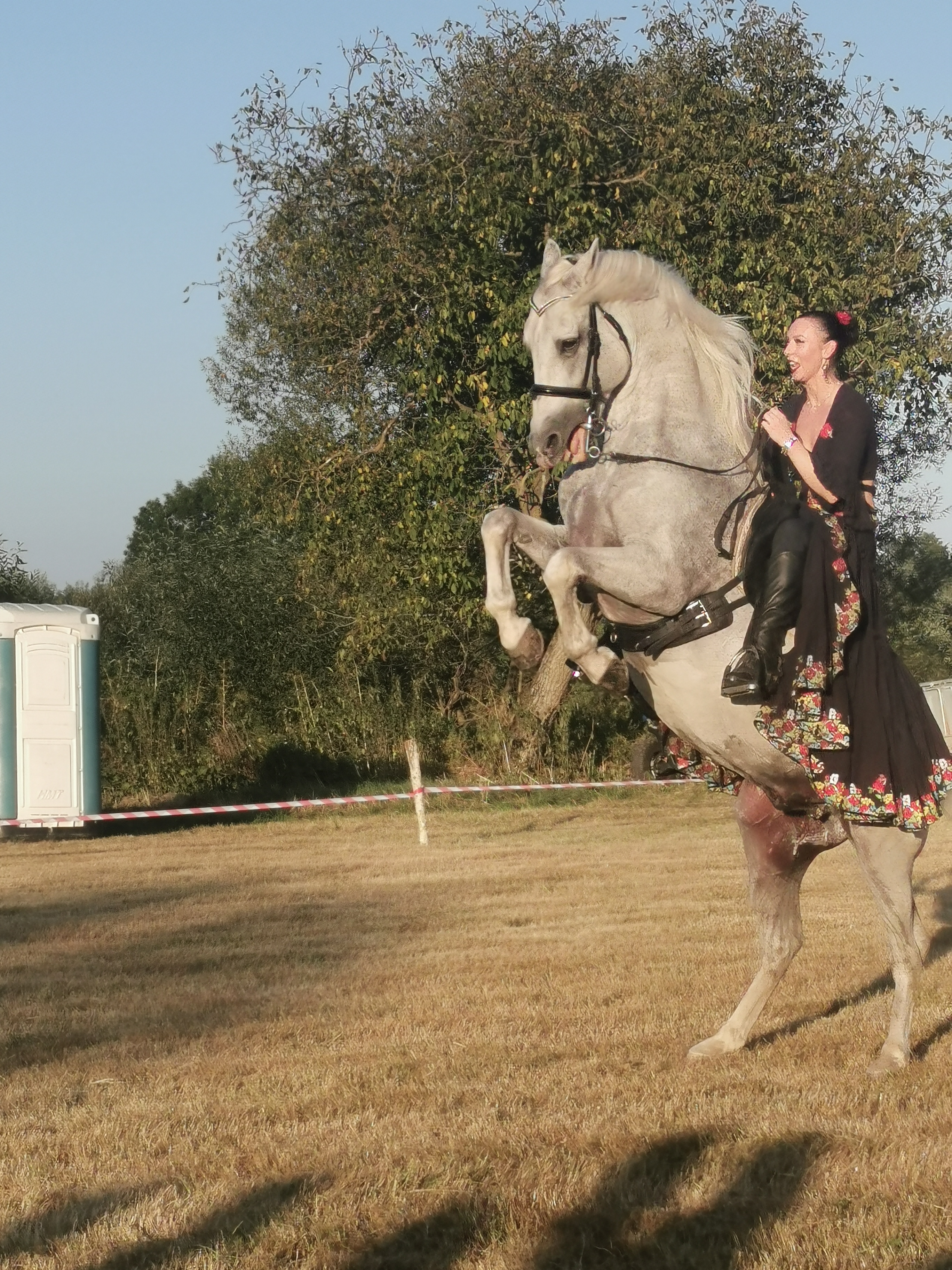 Cristian Urs, președintele PNL Făgăraș, a urmărit cu emoție spectacolul dat de lipițanul Pluto și dGergiana, dresoarea lui.