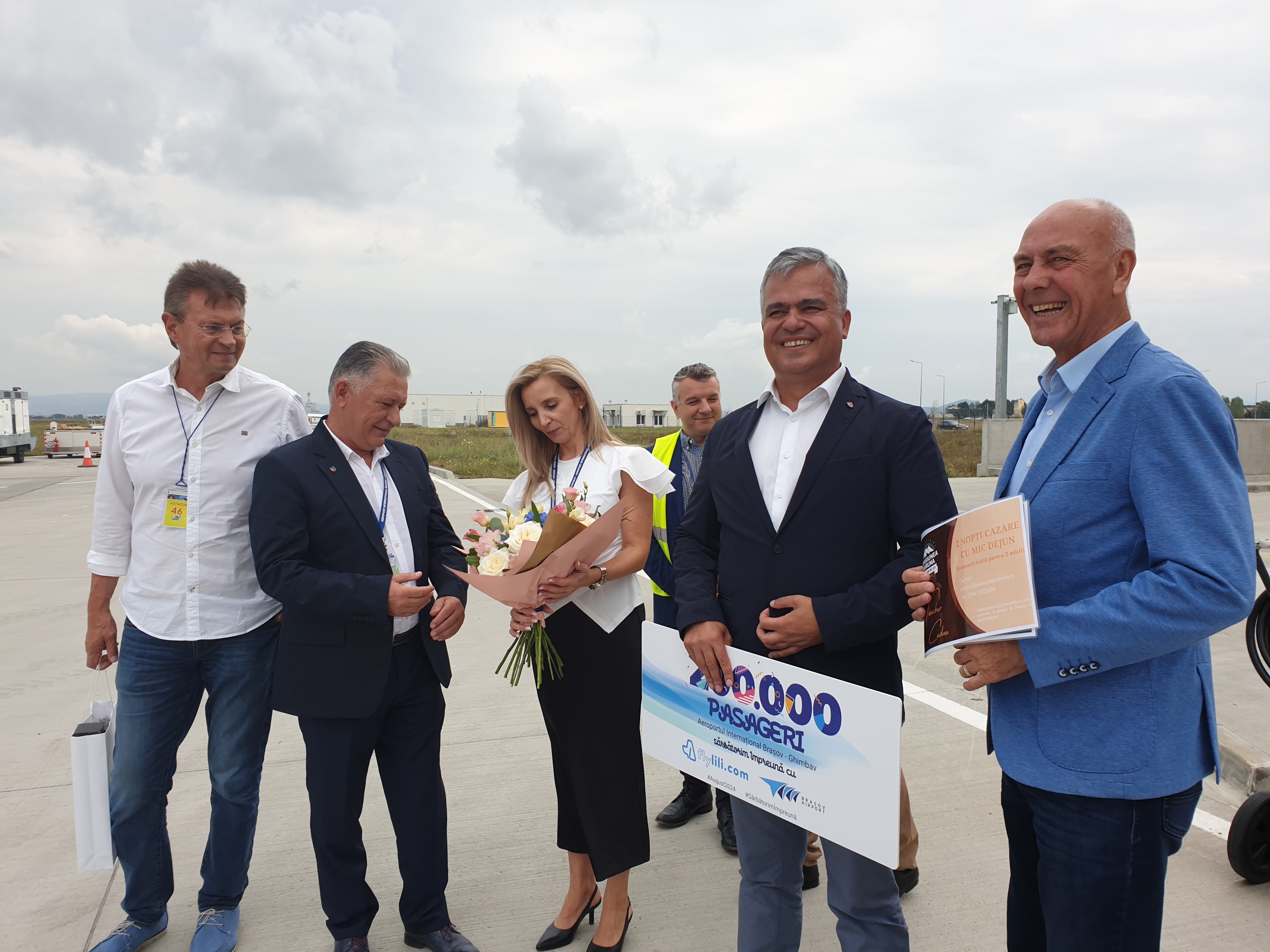 Alina Toma este pasagerul cu numărul 200.000 al Aeroportului Internaţional Braşov-Ghimbav, consemnat de la data inaugurării obiectivului, 15 iunie 2023. Însoţită de fiica sa şi de o prietenă a acesteia, Alina Toma a călătorit de la München la Braşov cu zborul FL 1002 al companiei Fly Lili, care a aterizat vineri, 30 august, la ora locală 12:10. La coborârea din aeronavă, pasagera a avut parte de o surpriză, fiind întâmpinată cu flori de Adrian-Ioan Veştea – ministrul Dezvoltării, Lucrărilor Publice şi Administraţiei, Constantin Todorică Şerban – preşedintele Consiliului Judeţean Braşov, Ionel Fliundra – primarul oraşului Ghimbav, Jürgen Faff – patronul Fly Lili, Ştefan Daniel Micu – preşedintele Consiliului de Administraţie al Regiei Autonome „Aeroportul Internaţional Braşov-Ghimbav”, şi Constantin Albu – directorul general al AIBG.