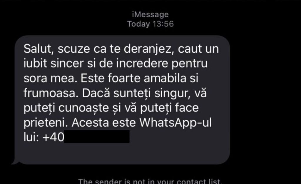 Nu contează că sună stupid, că are greșeli de exprimare, mesajele de care se folosesc escrocii sunt dintre cele mai diverse și inventive. „Salut, scuze că te deranjez, caut un iubit pentru sora mea”, este unul pe care mulți români l-au primit și care, după cum atrage atenția DNSC, poate fi începutul unei tentative de fraudă. Oficialii din domeniul securtății cibernetice atrag atenția asupra unui nou tip de atac, pe care l-au numit „Iubire Prefăcută”, și care apelează la sentimentele victimelor pentru a obține informații și chiar bani.