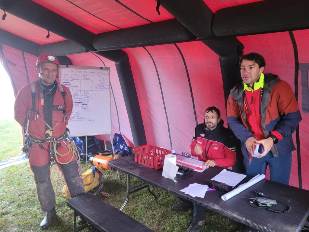 Echipele Salvaspeo au fost mobilizate și coordonate din punctul de comandă instalat lângă intrarea în peșteră. Victima a primit îngrijiri medicale la locul accidentului, unde salvatorii au creat un punct cald. În același timp, alte echipe Salvaspeo au montat sistemele de corzi, inclusiv o tiroliană, necesare pentru evacuarea în siguranță a speologului accidentat, în zonele cu obstacole.