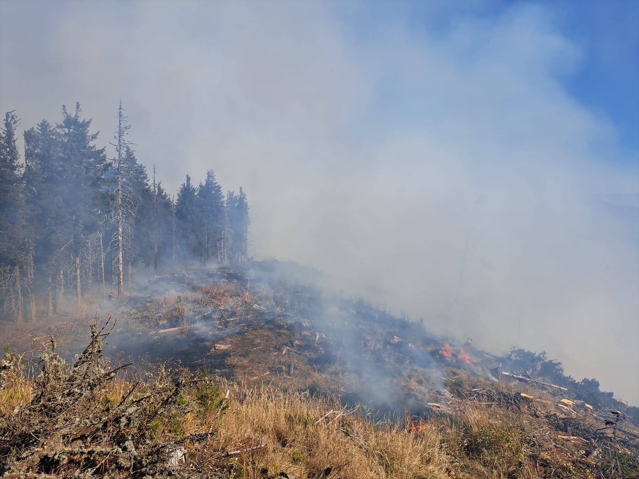 - ,,Astazi, 26.10.2024, am fost anunţaţi cã in zona Stramba-Zarnești se vede un fum foarte puternic provenit probabil de la un incendiu de pãdure. Ne-am deplasat la faţa locului cu o maşinã 4×4 constatând ca este un incendiu puternic la limita dintre Ocoalele Silvice Zãrneşti şi Fãgãraş, la aproximativ 500 m de fondul forestier administrat de noi şi la mai puţin de 1,5 km de situl UNESCO „Codrii Seculari de la Şinca”. Am alertat colegii, in cel mai scurt timp adunând o echipa de aprox 30 de persoane de la ocolul nostru la care s-au adãugat aprox 50 de pompieri sprijiniti de un elicopter Black Hawk si colegii de la OS Zarnesti, reuşind astfel sã oprim intrarea focului in pãdure, unde ar fi fost aproape imposibil de stins“ a comunicat Ocolul Silvic Pădurile Șincii.