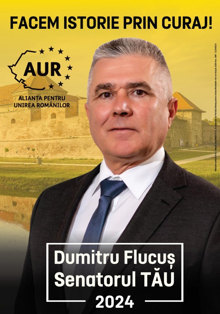 Dumitru Flucuș este singurul făgărășean care candidează pentru un loc în Senatul României la alegerile parlamentare din 2024, pe listele Alianței pentru Unirea Românilor (AUR). Dumitru Flucuș a fost deputat în mandatul 2020-2024, iar de la înființarea comunei Șinca Nouă, în 2002, a fost primarul acesteia. Dumitru Flucuș s-a născut la 13 mai 1966, la Șinca Nouă. Este inginer, absolvent al Universității Transilvania Brașov, mecanică fină, 1986-1990. În perioada 2006-2010 a urmat cursurile Universității ,,Lucian Blaga“ din Sibiu, Facultatea de Inginerie, apoi un master în Managementul proiectelor europene, 2013-2015, la aceeași universitate. În acest mandat, este secretar al Comisiei pentru administraţie publică şi amenajarea teritoriului din Camera Deputaţilor. A avut 114 propuneri legislative dintre care 6 au devenit legi.