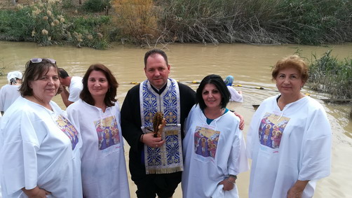 Iordanul tăia regatul lui Irod de la nord la sud. Începând de la izvoare, aflate la poalele muntelui Ermon, el traversează Marea Galileii şi se varsă mai la sud, în Marea Moartă, ce pare o întindere de sare, rezultat al unei evaporări rapide a apei. Unul dintre obiectivele cuprinse în itinerarul urmat de grupul din care am făcut parte a fost râul Iordan, acolo unde Mîntuitorul Iisus a fost botezat de Ioan Botezătorul. Se spune că locul vizitat de pelerini ar fi acela unde Domnul Iisus l-a întâlnit pe Ioan Botezătorul care boteza oamenii în apa Iordanului. Este un loc special amenajat pe malul râului cu apă tulbure şi rece. Sunt amenajate spaţii în care grupurile de pelerini pot asculta comod explicaţiile ghizilor ca apoi să se boteze în apa Ioardanului. Grupul nostru a ocupat unul dintre spaţii, iar preoţii însoţitori Nicolae Lie şi Ovidiu Polexa au săvârşit slujba de sfinţire a apei, aghiazma mică. S-a folosit apa adusă din Iordan, iar fiecare persoană şi-a putut lua acasă câte o sticlă. A urmat apoi botezul în apa Iordanului conform tradiţiei din scripturi, nu înainte de a ne îmbrăca cu o cămaşă albă oferită în dar de preotul Ovidiu Polexe. Fiecare dintre noi a fost botezat de preotul Nicolae Lie, aşa cum este ritualul de Bobotează. Râuri de pelerini din toate ţările merg pe urmele botezului sfânt de la Iordan, la locul numit Yardenit (Betabara biblică), unii dintre ei chiar fac baie în apa răului.