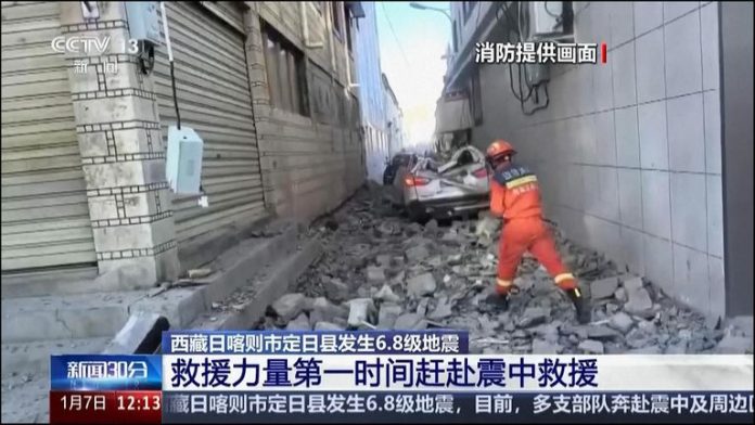 Forțele aeriene chineze au lansat echipe de salvare și drone în zona afectată, care se află la poalele Muntelui Everest și unde temperaturile sunt mult sub zero.